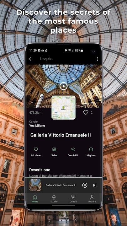 With Loquis you can listen to and publish geo-localized podcasts, thanks also to the innovative navigator function.