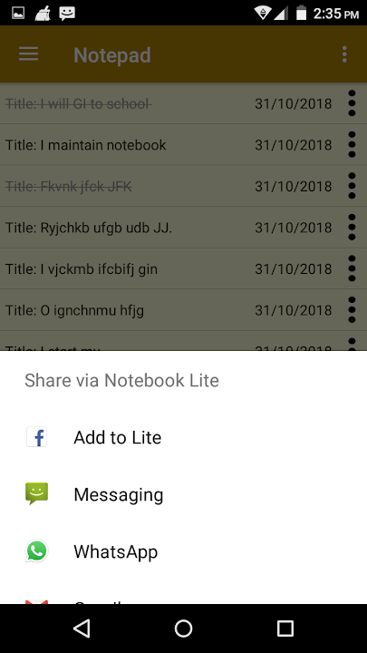 簡単なワープロプログラムとして機能するテキストオプションは、あなたが入力したいと思う数の文字を許可します。保存すると、デバイスのメニューボタンを使用して、編集、共有、リマインダーの設定、メモのチェック/オフを行うことができます。テキストノートをチェックアウトすると、リストのタイトルにスラッシュが表示され、メインメニューに表示されます。