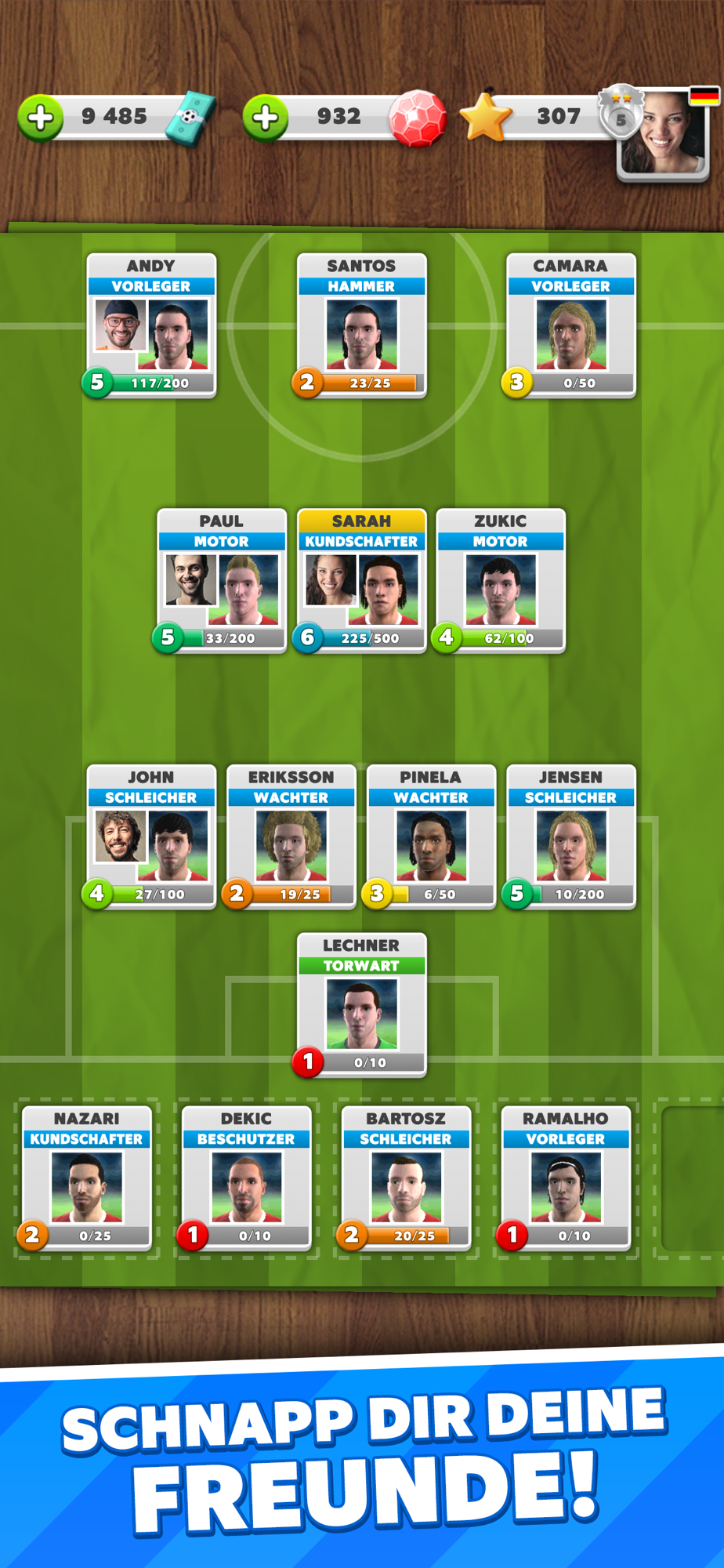 Sammle und verbessere einzigartige Spielertypen, lege deine Aufstellung fest und nutze dann dein Können, um den Aufstieg zu schaffen!
