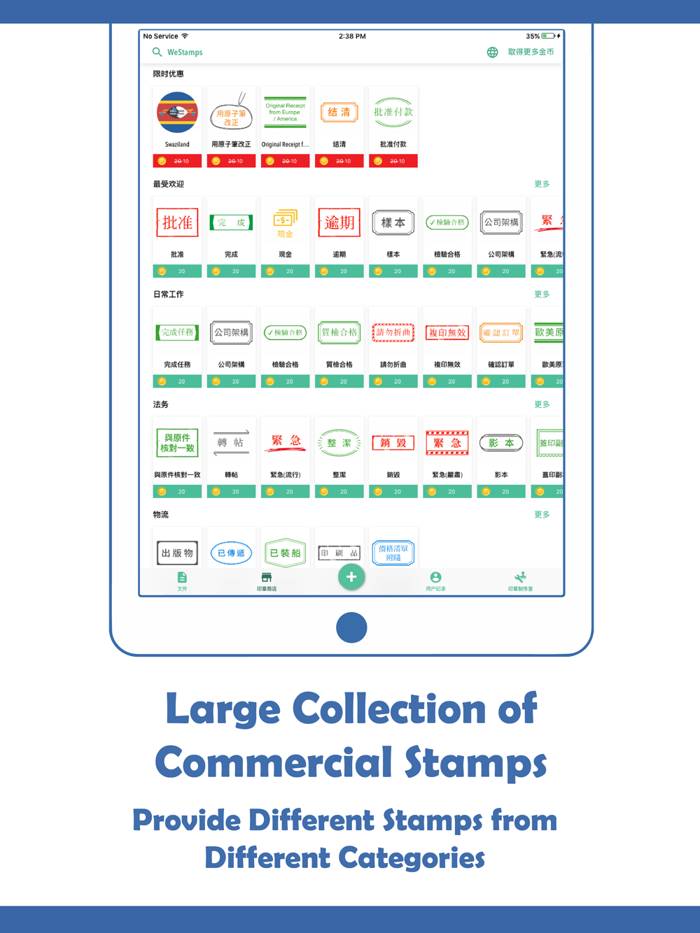 - Integrated Stamp Builder to let you make stamps and logo