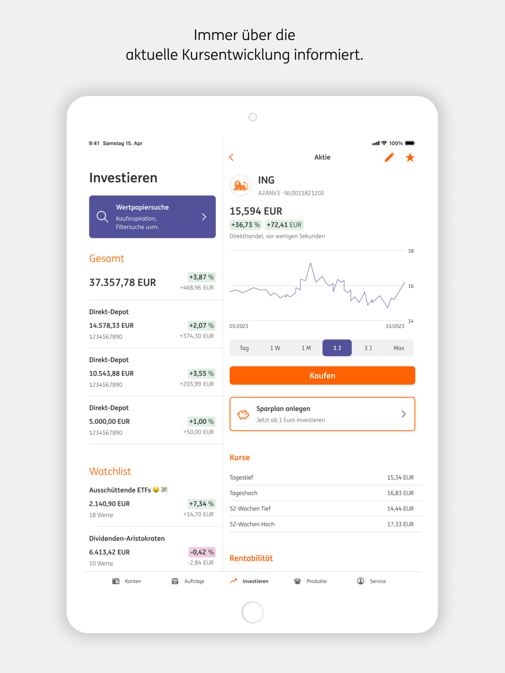 - Wertpapiere kaufen oder verkaufen und deren Entwicklung in interaktiven Charts sehen