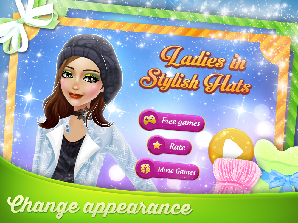 Change clothes and apply a perfect makeup in brand new game for kids "Ladies in Stylish Hats". Use your imagination and help lady get stylish look! Dressup princess with pretty dresses, blouses, skirts, choose awesome hats, make fashionable haircuts! Do not forget to use lipstick, eyeshadows and blushes, change brows shape skin tone and eyecolor! Surpise all of friend with your new fashionable style!