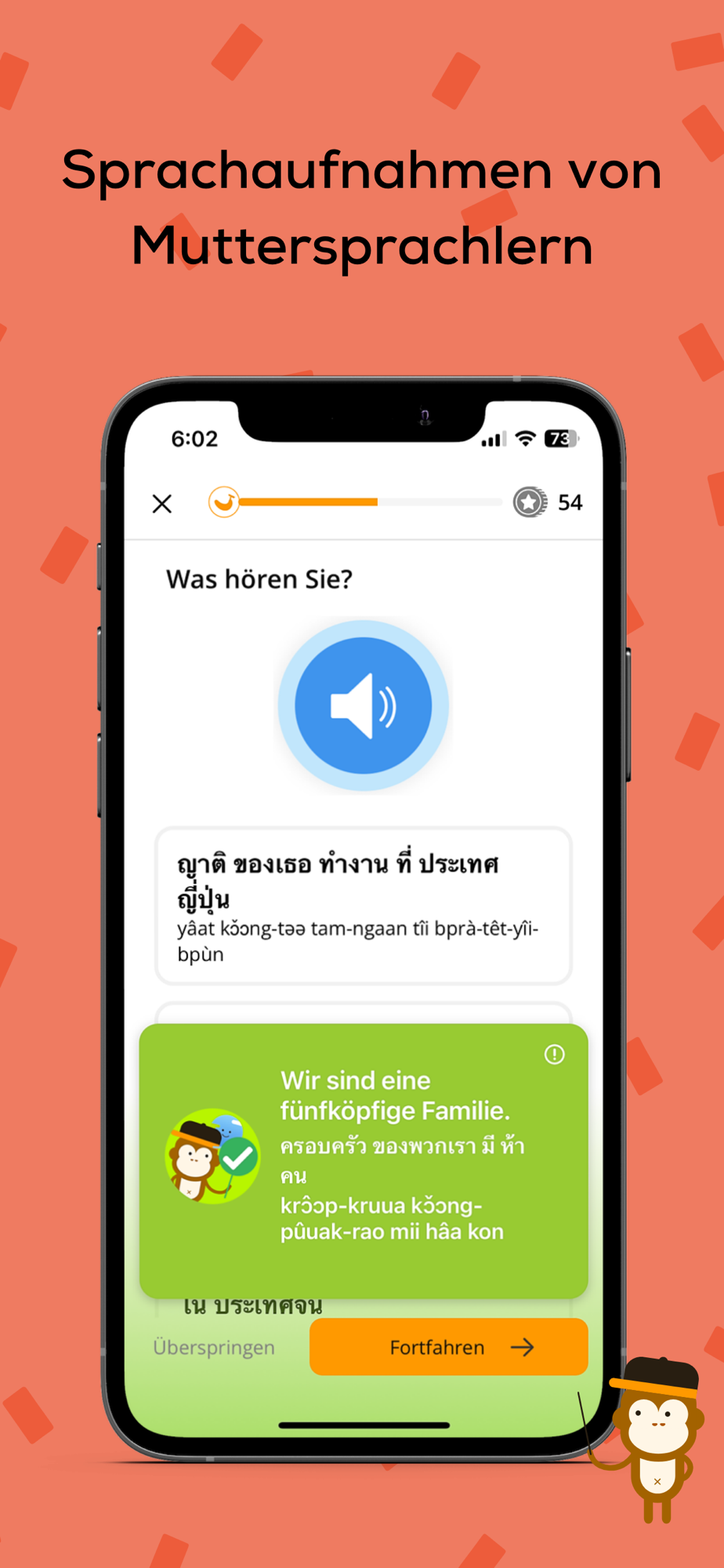 - Höre zu und wiederhole, was du von thailändischen Muttersprachlern hörst