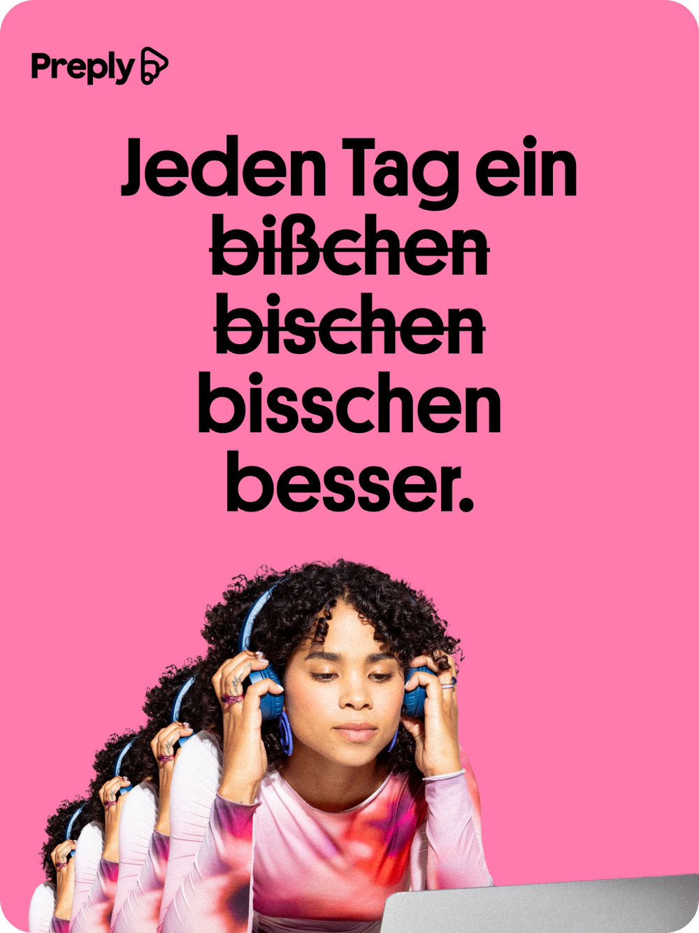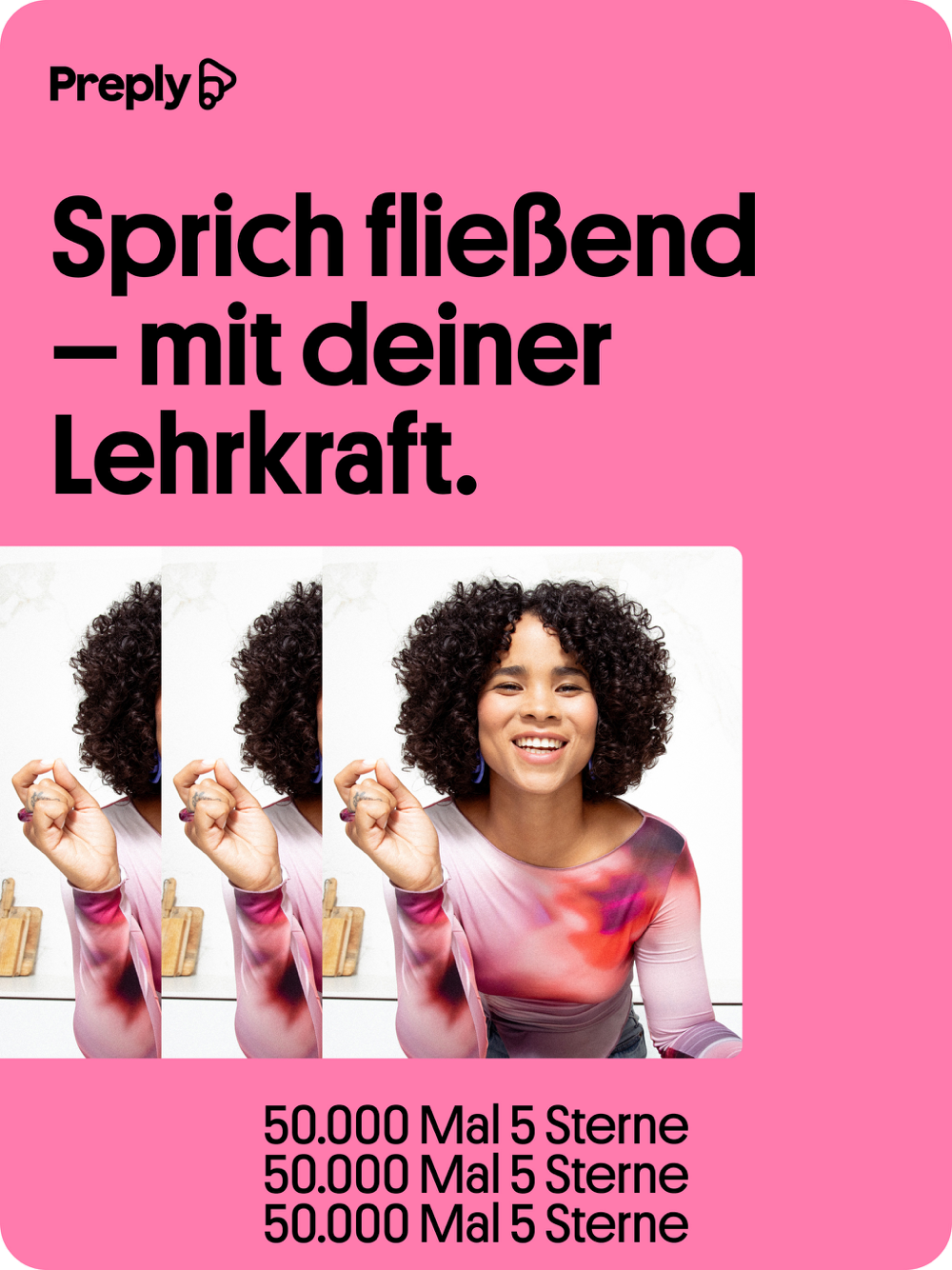 Heute ist der perfekte Tag, um mit dem Sprachenlernen anzufangen! Neben Deutsch und Englisch sind Lehrerinnen und Lehrer für beliebte Sprachen wie Französisch, Spanisch und viele mehr verfügbar. Lade die Preply-App herunter und mach den ersten Schritt, um selbstbewusst zu sprechen.