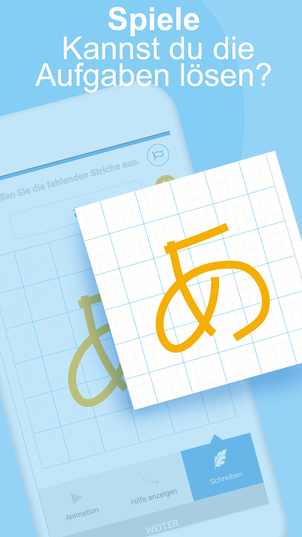 • Folge den Animationen, um deine Handschrift zu üben
