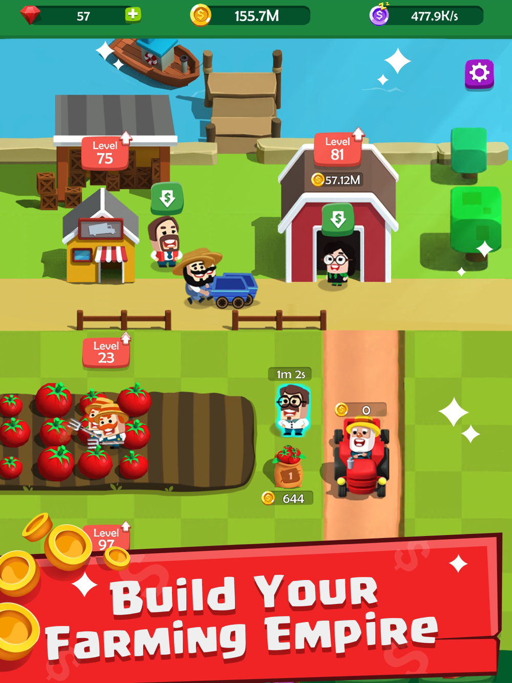 In love with our other idle games, check out the idle farming tycoon game and get the complete Farming experience. With a variety to different crops from corn, tomatoes, rice, wheat, fruits, potatoes and many more to hiring the most effective farmers in their trade make this one of the best farm games on the play store.