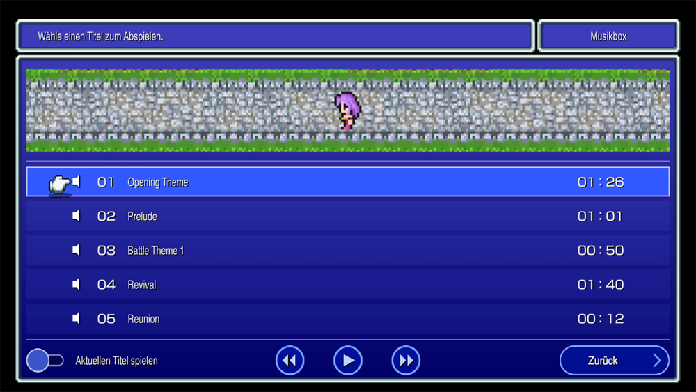 ・Durchgängig aktualisierte 2D-Pixel-Grafik, darunter die kultigen FINAL FANTASY-Charakterdesigns von Kazuko Shibuya, der Künstlerin des Originals und derzeitiger Mitwirkenden.