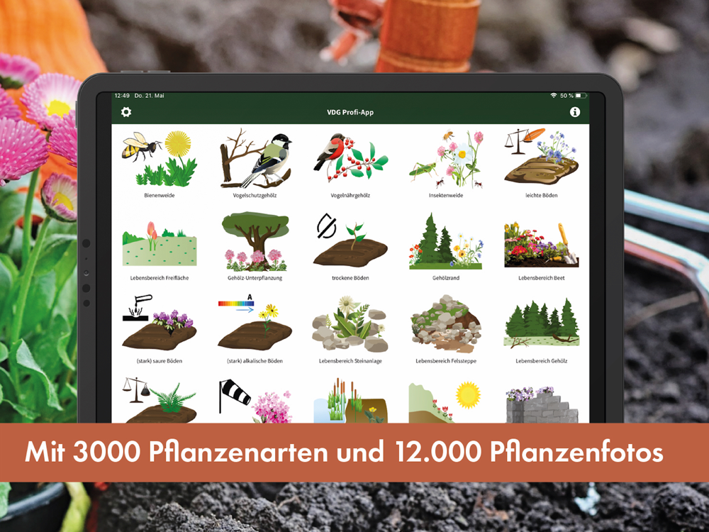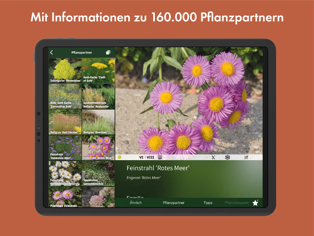 • 30.000 Pflanzhinweise und Pflegetipps, 160.000 Verweise auf Pflanzpartner.