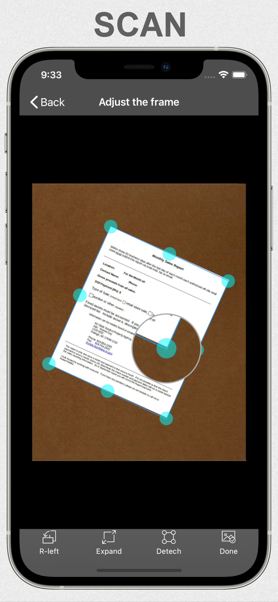- Latest mobile scanning technology for high quality PDF, JPG output.
