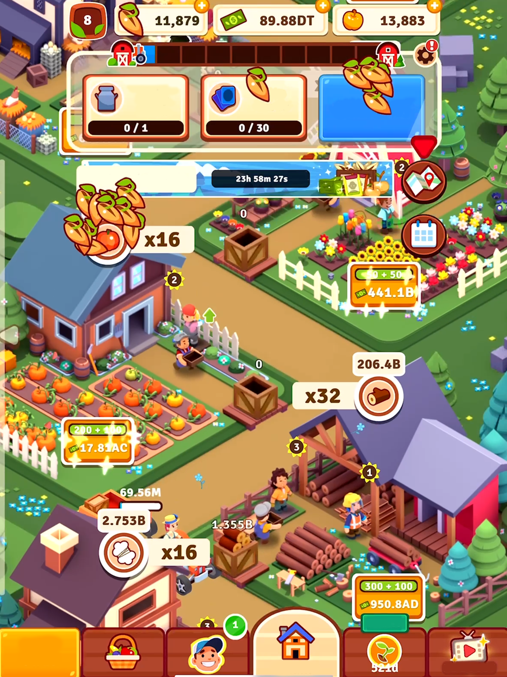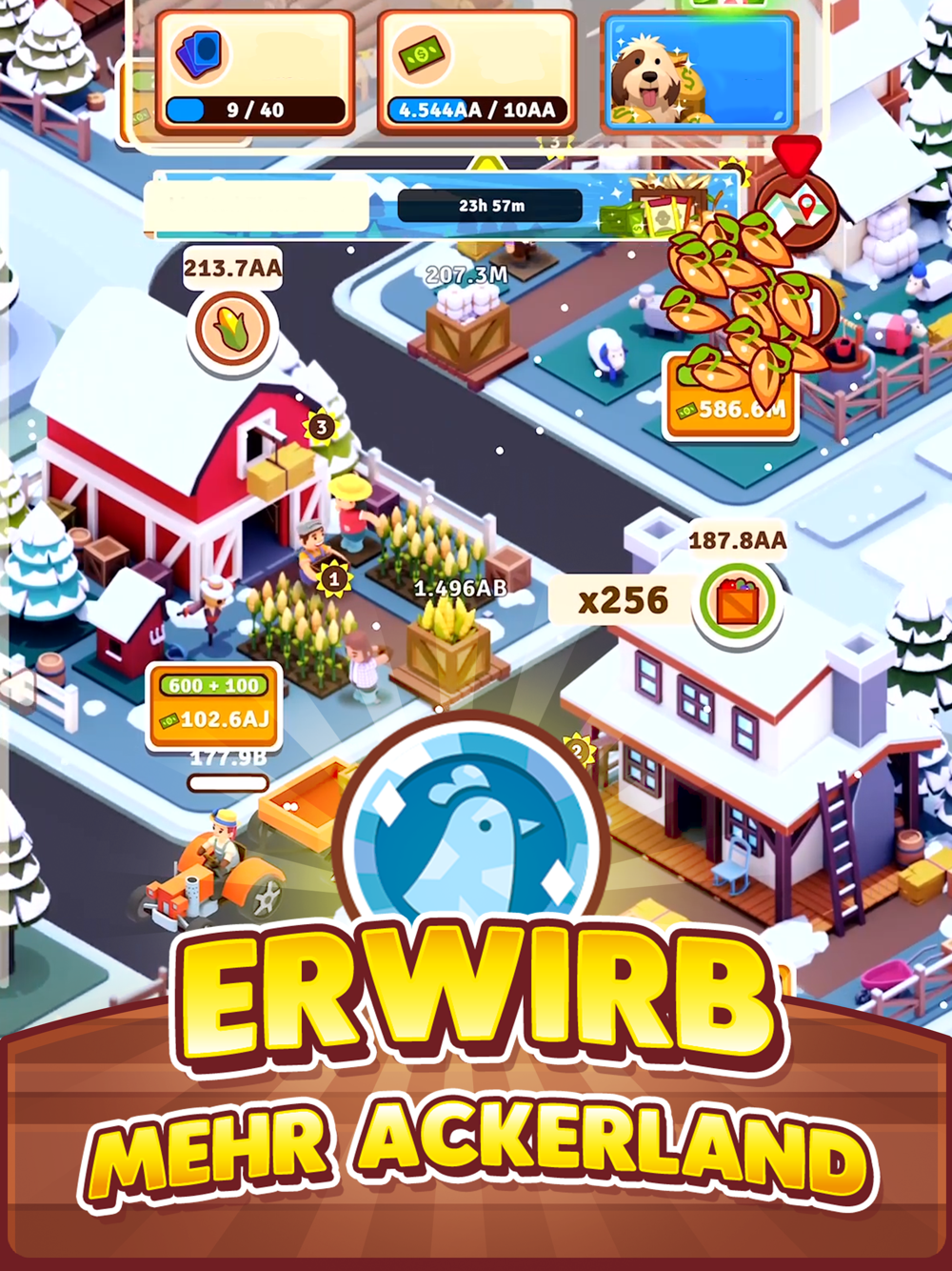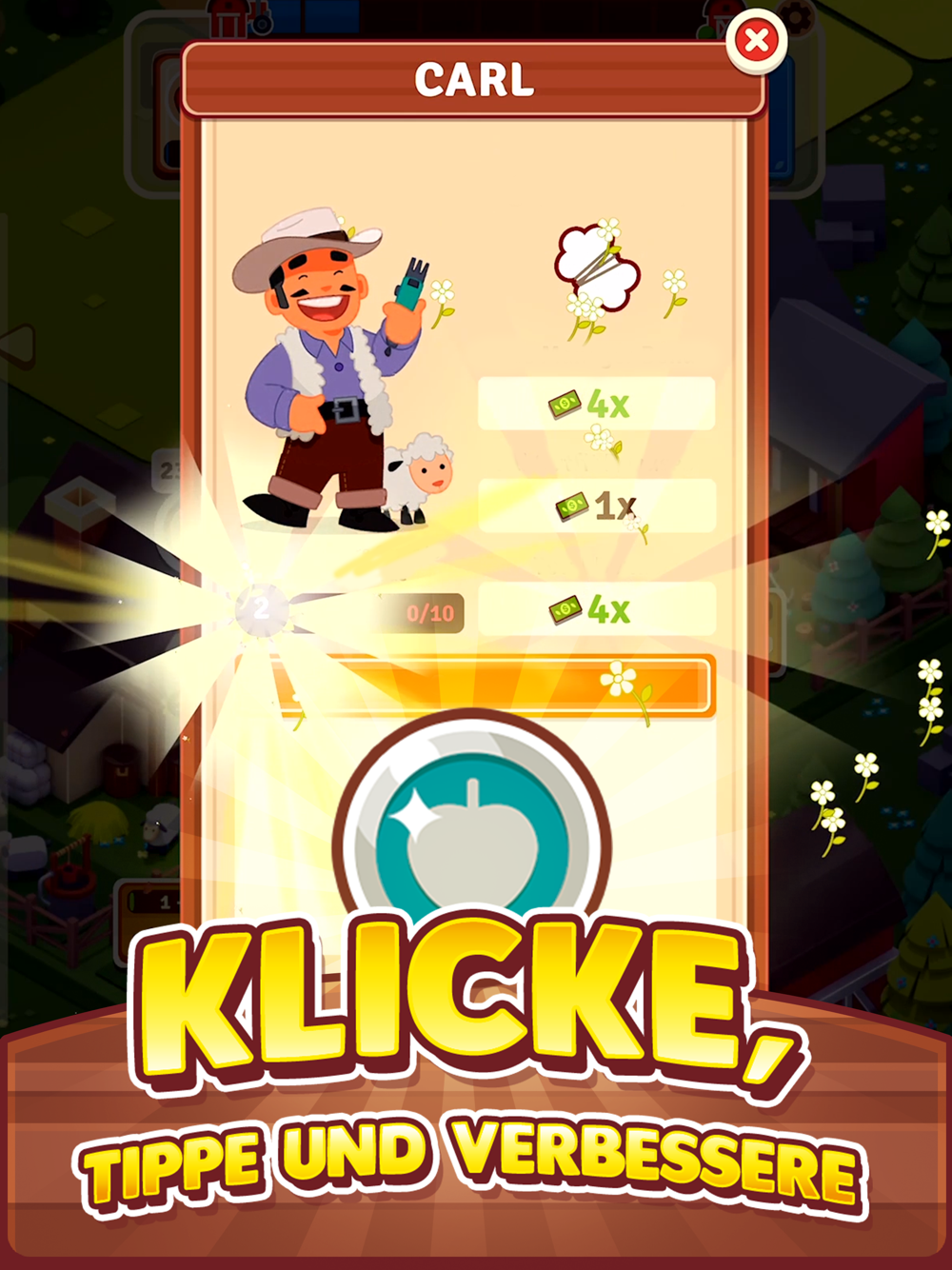 Klicke, tippe und verbessere deine Gebäude, um Bares zu verdienen. Stelle Arbeiter ein, die dir zur Hand gehen. Kümmere dich um deinen Garten und verkaufe die Waren auf dem Bauernmarkt mit Gewinn!