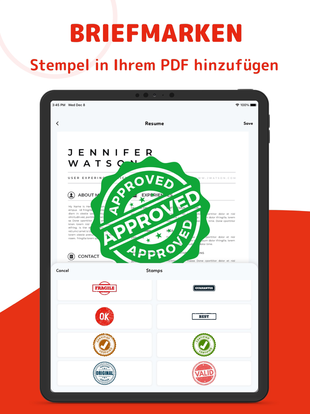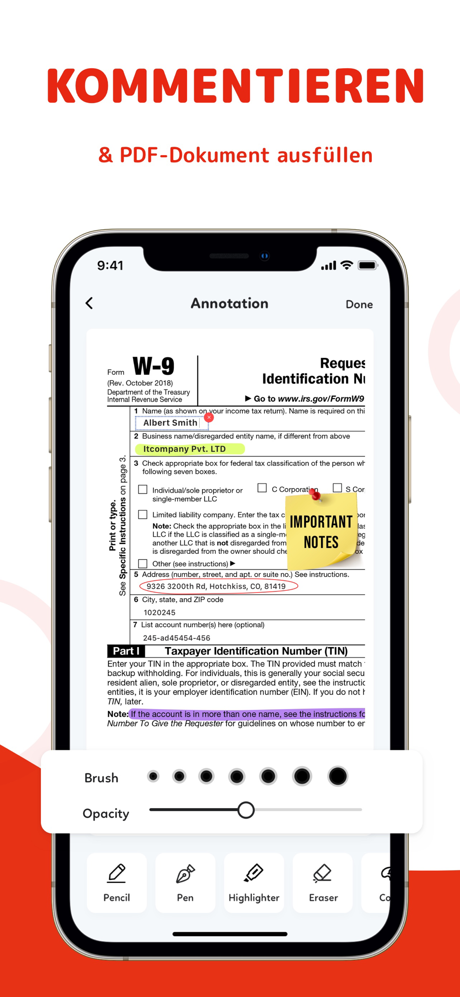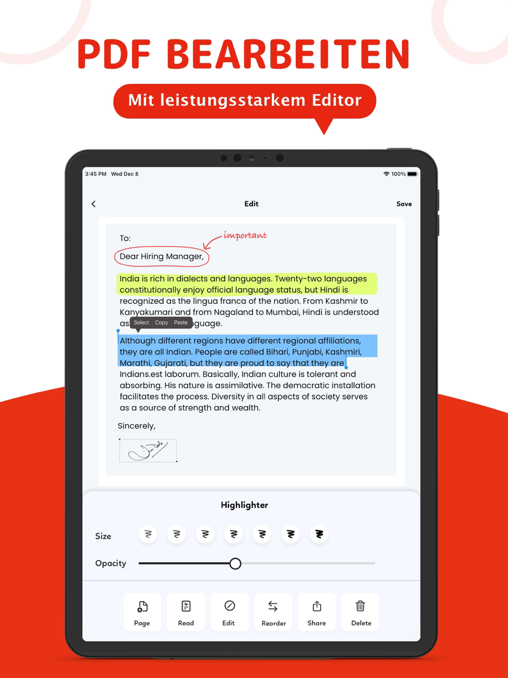 PDF-Editor, Formular ausfüllen, signieren, kommentieren, Fotos in PDF umwandeln und vieles mehr.