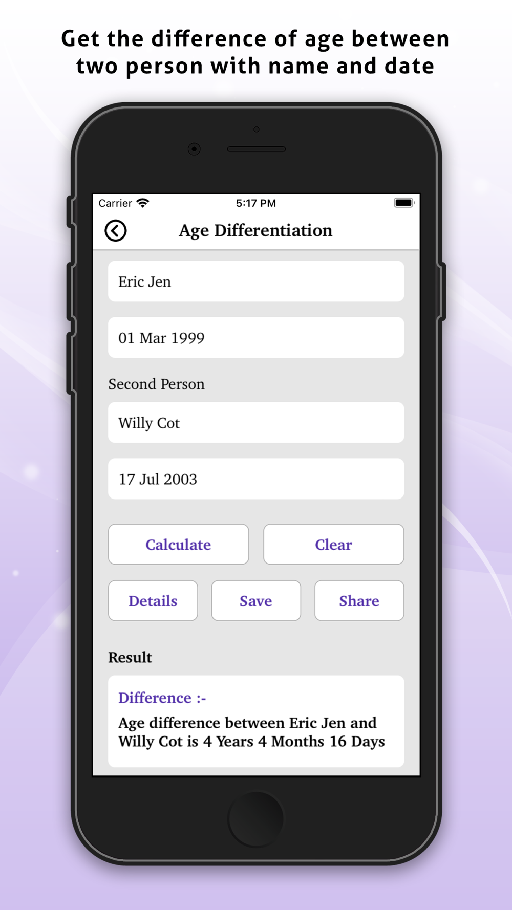 With all these features app also allows you to save all this calculated dates and add family members and friends to never miss important dates.