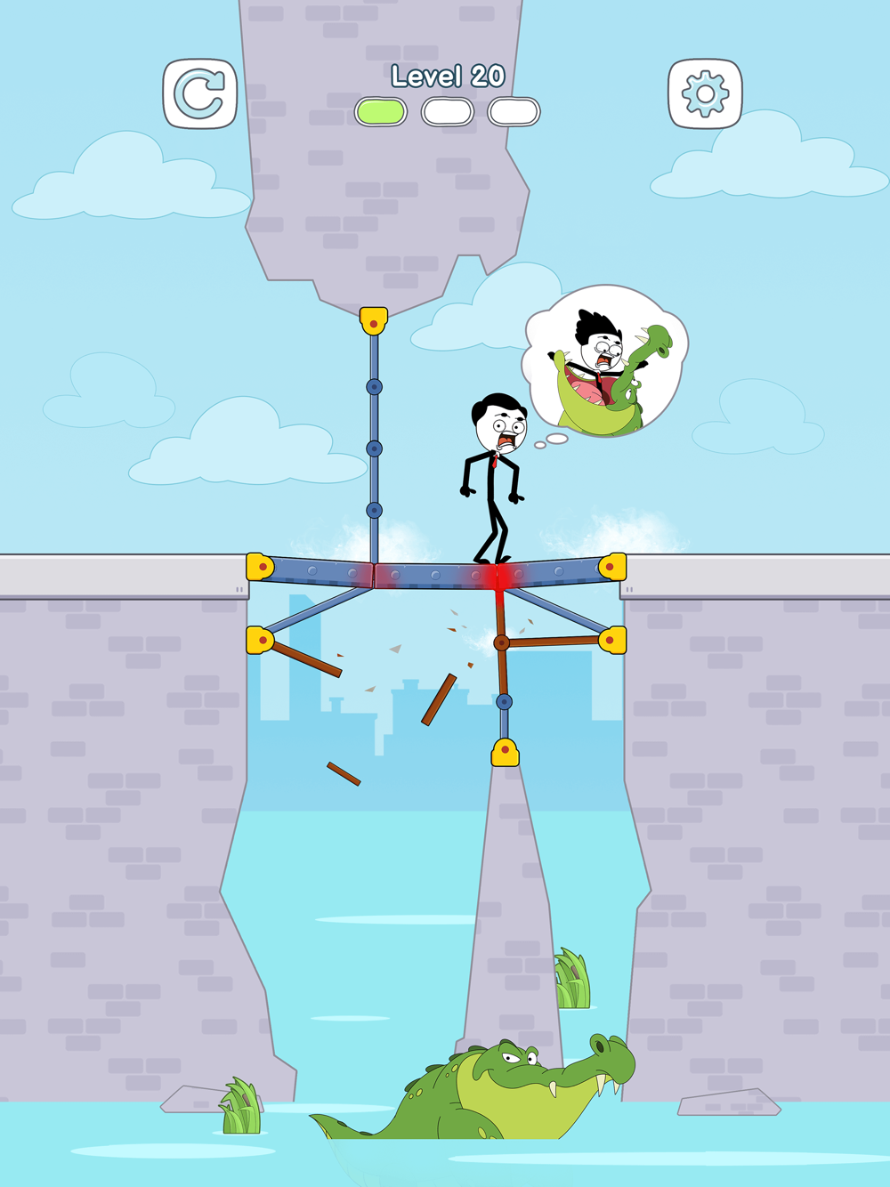 Bridge Puzzle is a real challenging for those in love with puzzle game! Can the stickman pass through the bridge!? It depends on your ingenuity and smart