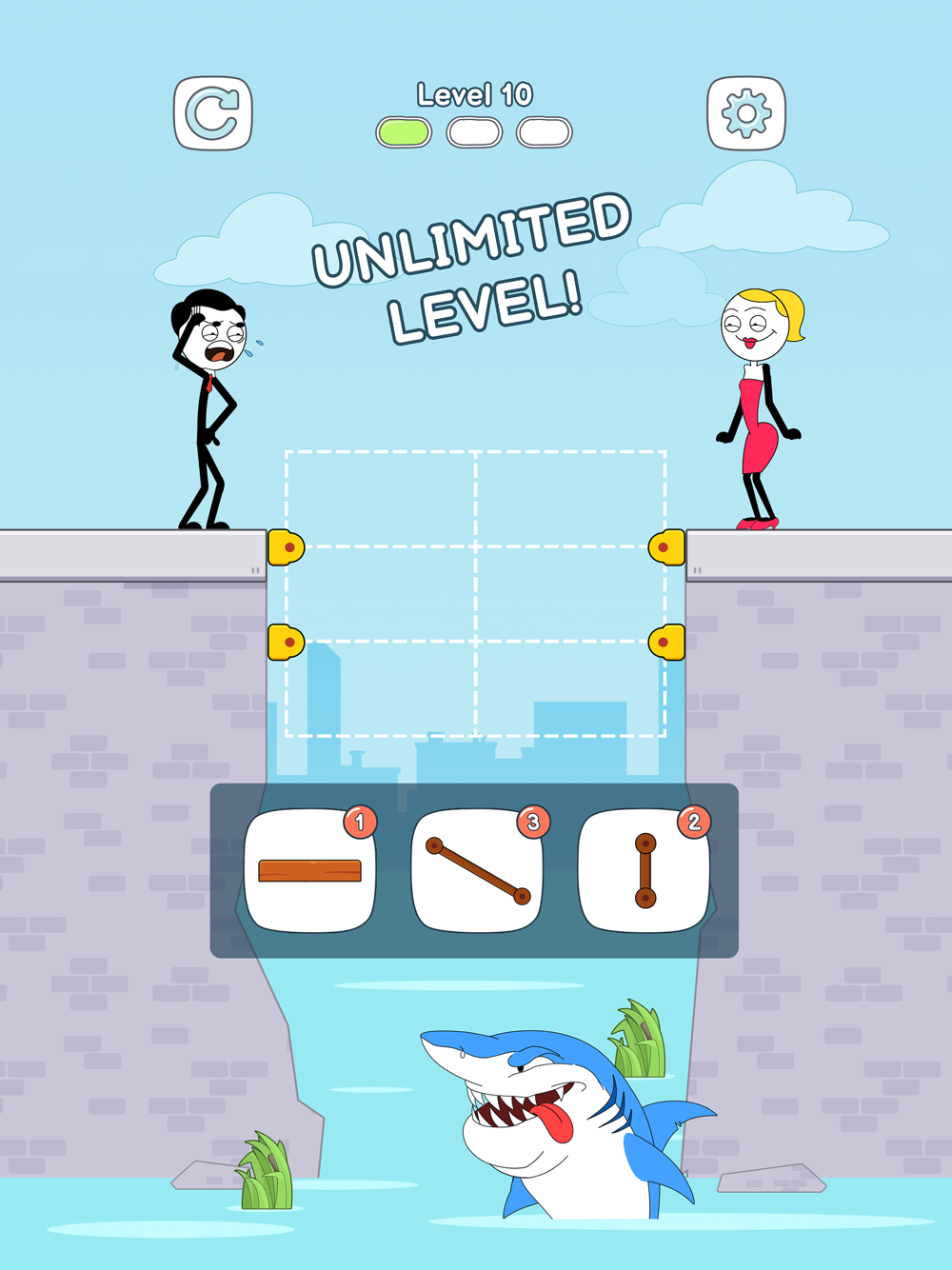 Drag all the given items to build the bridge stronger. There are many different levels in Draw A Bridge Game to challenge your brain and test your IQ! The Bridge Puzzle game over if the stickman falls off the bridge. So, make sure you built a really solid bridge before cross it.
