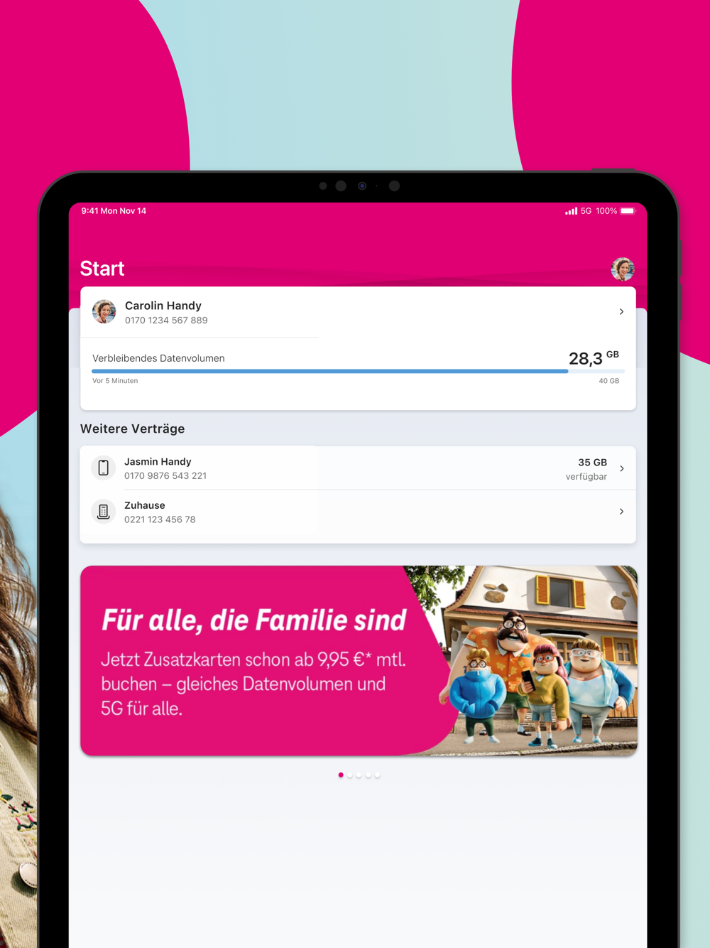 Alle wichtigen Infos zu Telekom Services wie Datenverbrauch, Vertrag, Rechnungen, Guthaben, Auftragsübersicht und vieles mehr – in einer App.