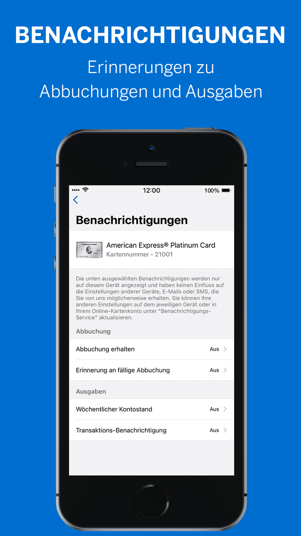 • Die App ist für private American Express® Karten und Corporate Cards, die von American