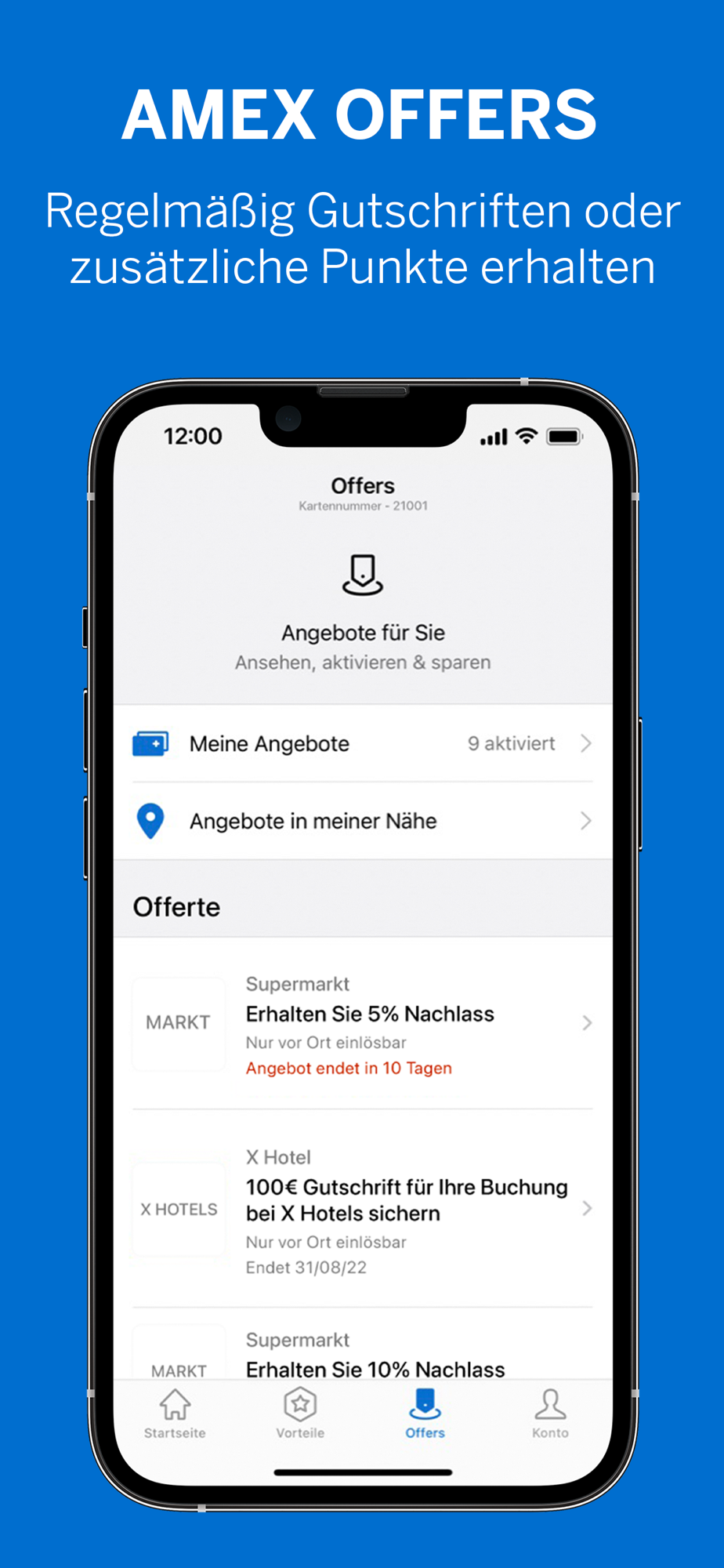 • Amex Offers: Einfach das gewünschte Angebot direkt in der App auswählen, aktivieren und beim nächsten Einkauf ganz automatisch sparen.