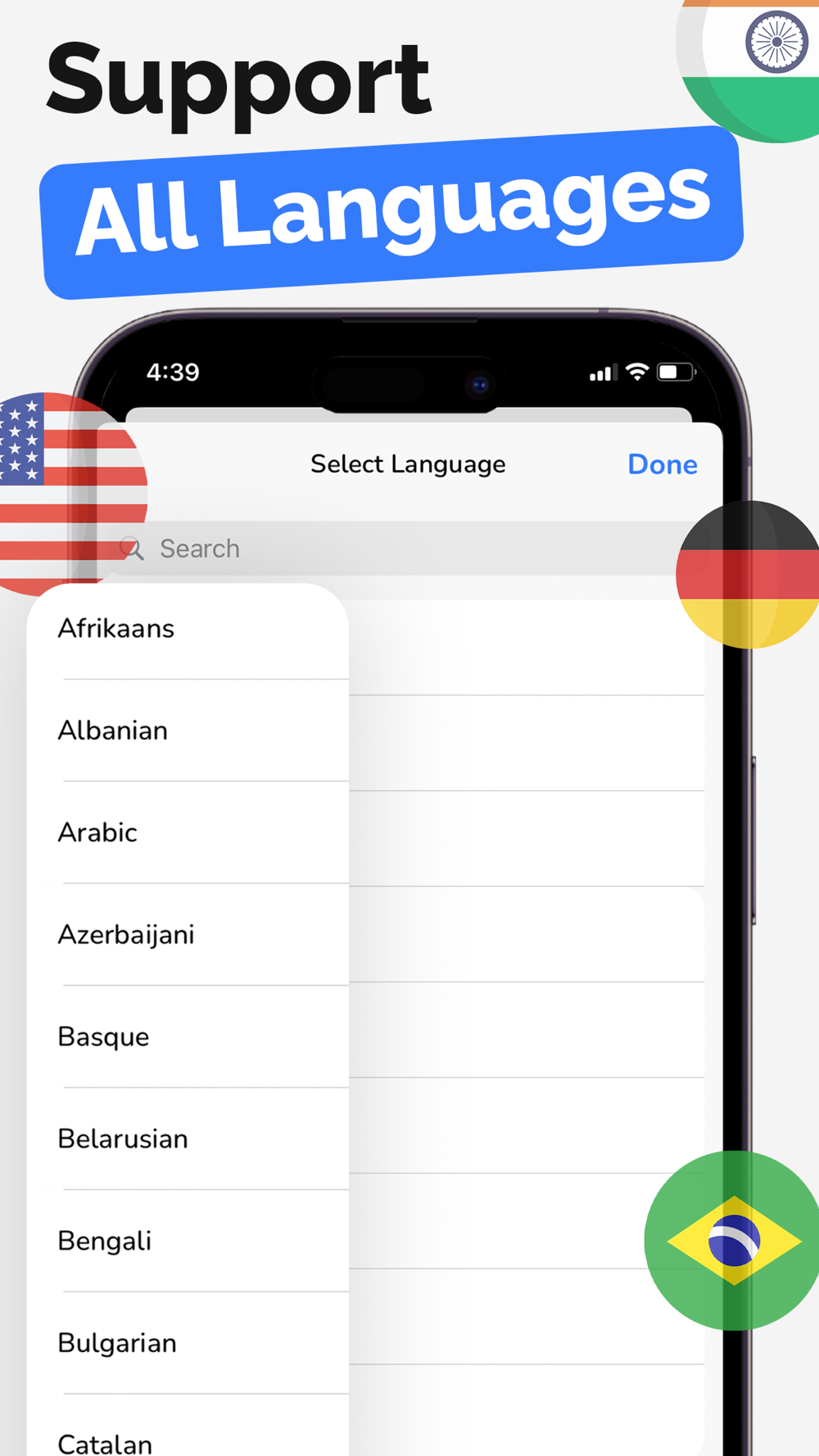 This app supports following languages: