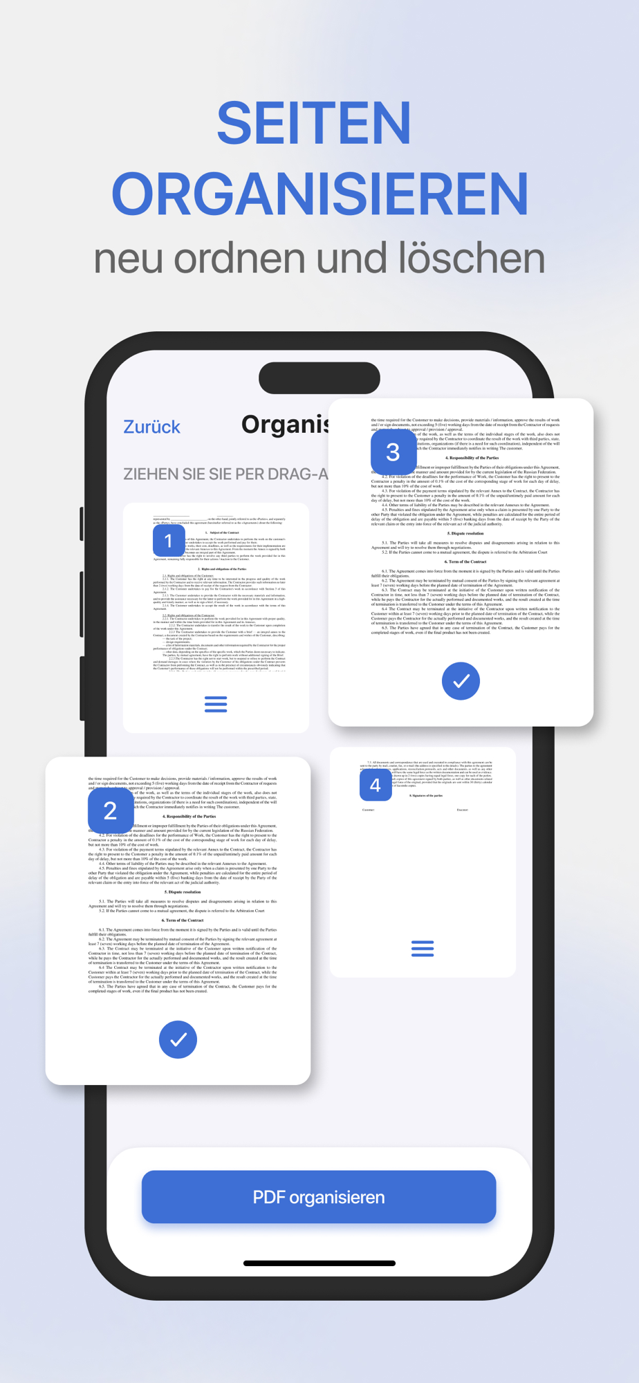 Sie können eine oder mehrere Seiten neu anordnen, drehen oder entfernen.