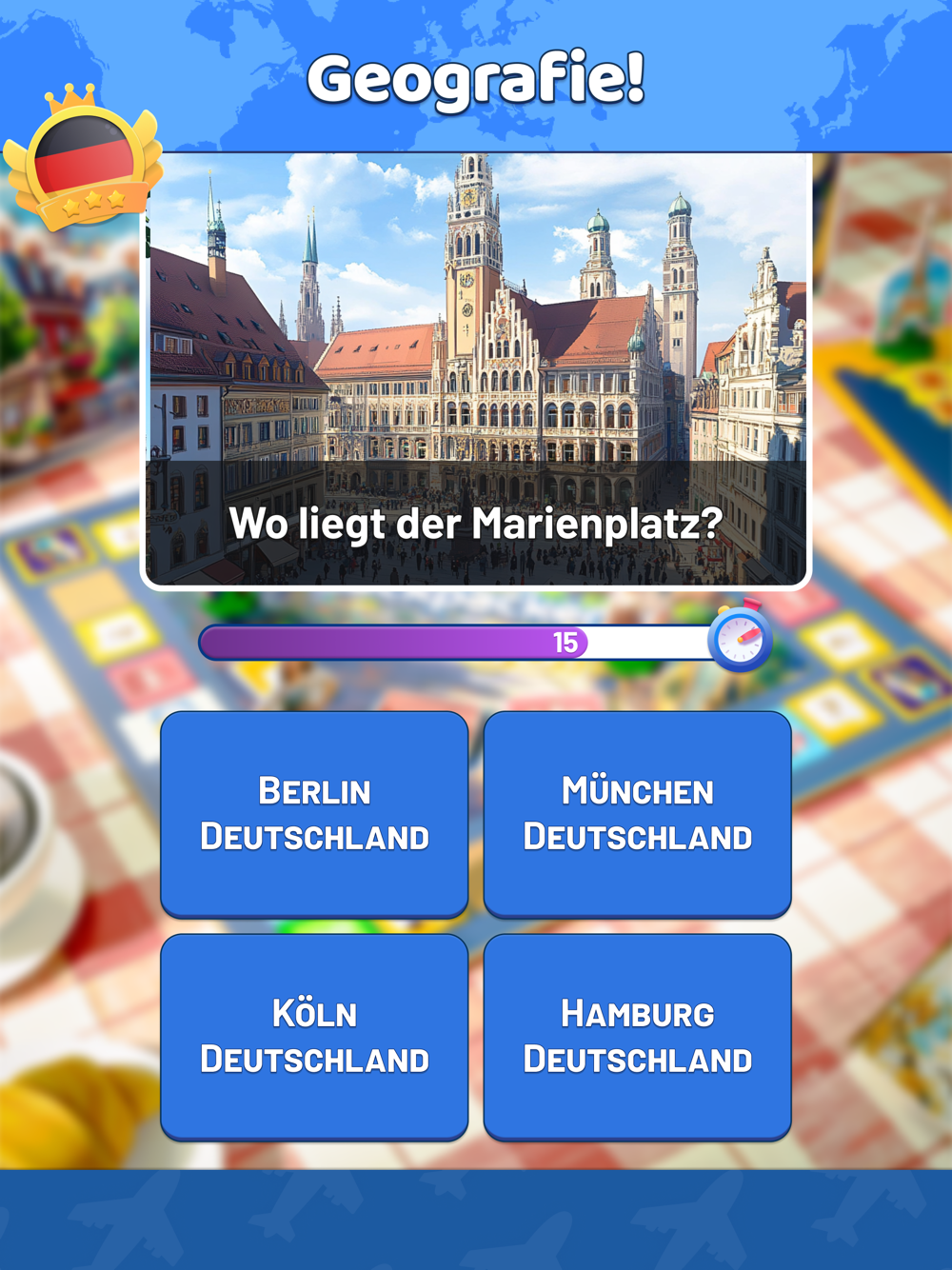 Geschichte und Spielverlauf Starte deine Reise auf den belebten Straßen von New York, den romantischen Alleen von Paris oder den lebhaften Stränden von Rio de Janeiro. Jeder Würfelwurf bringt dich in einen neuen Teil dieser unglaublichen Städte. Sprich mit den Einheimischen, nimm Quiz-Herausforderungen an und hilf bei Aufgaben, um dein Ticket zur nächsten Stadt zu verdienen. Dein Wissen über Geografie, Geschichte und Kultur wird dein Leitfaden, während du die Welt bereist!