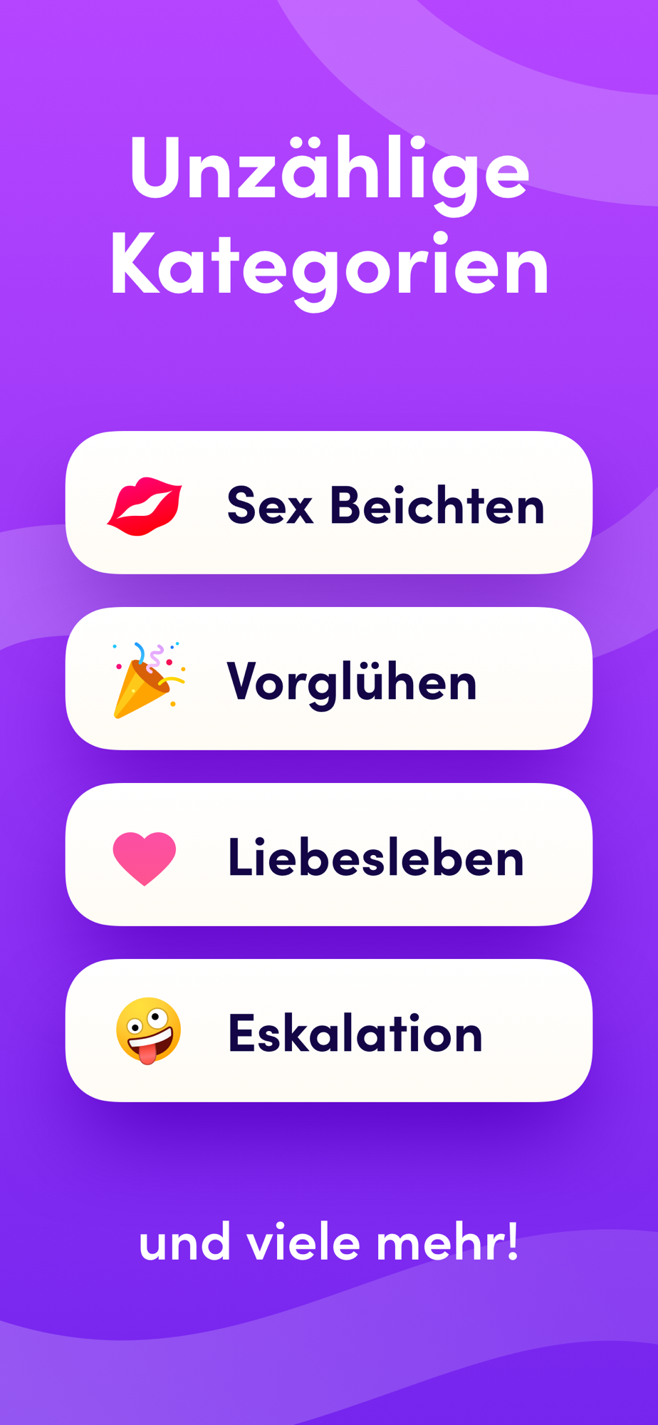 In der App kannst du aus 5 verschiedenen Fragekategorien wählen. Da ist sicher für jeden etwas dabei.