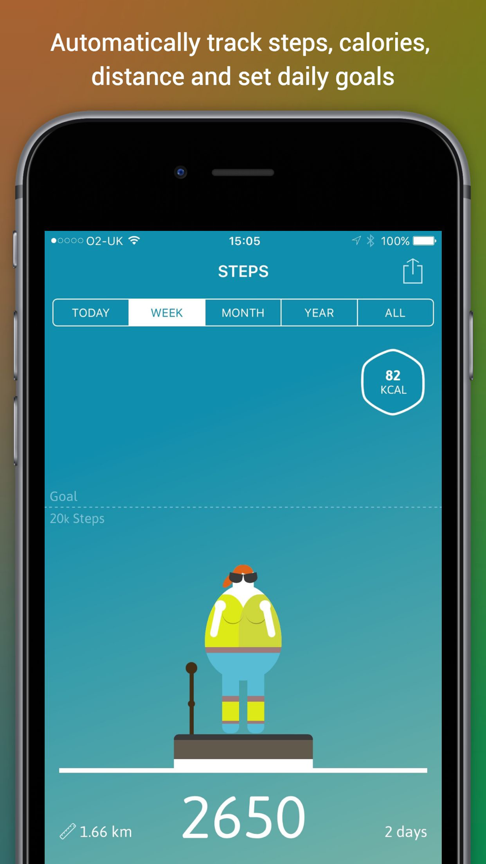 Unlock your full step and calorie history by connecting to the Health App. See how many goals you have met, over each day, week, month, or year, as well as a summary of all the calories burned and distance covered.