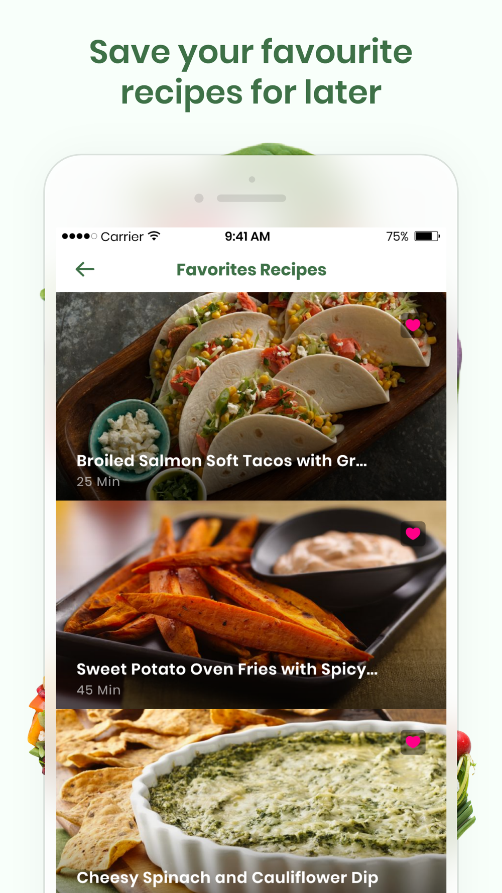 The Super Vegetables Recipes app contains recipes with wide range of ingredient content like minimal ingredient to healthy ingredients.