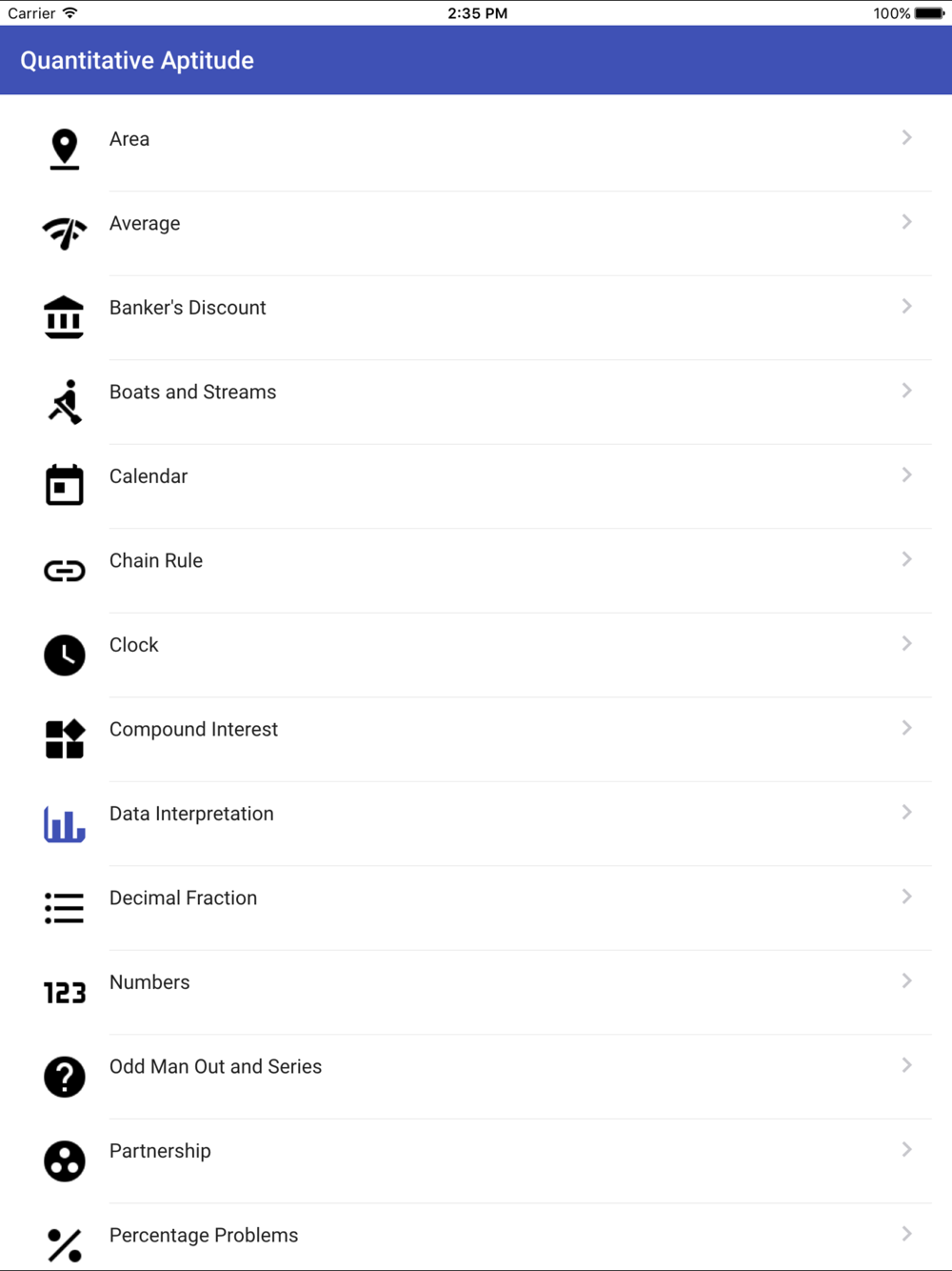 Quantitative Aptitude app provide complete explanation and practice exercises with detailed solution of All arithmetic (Quant) problems.