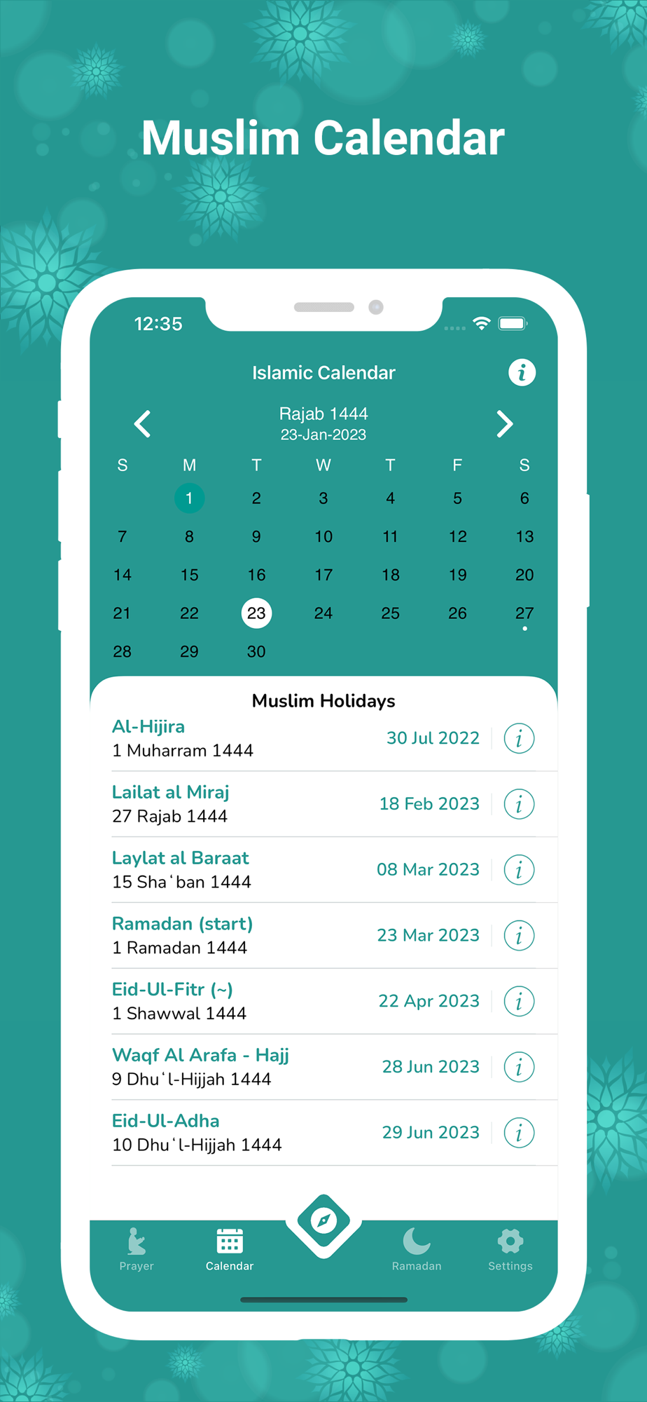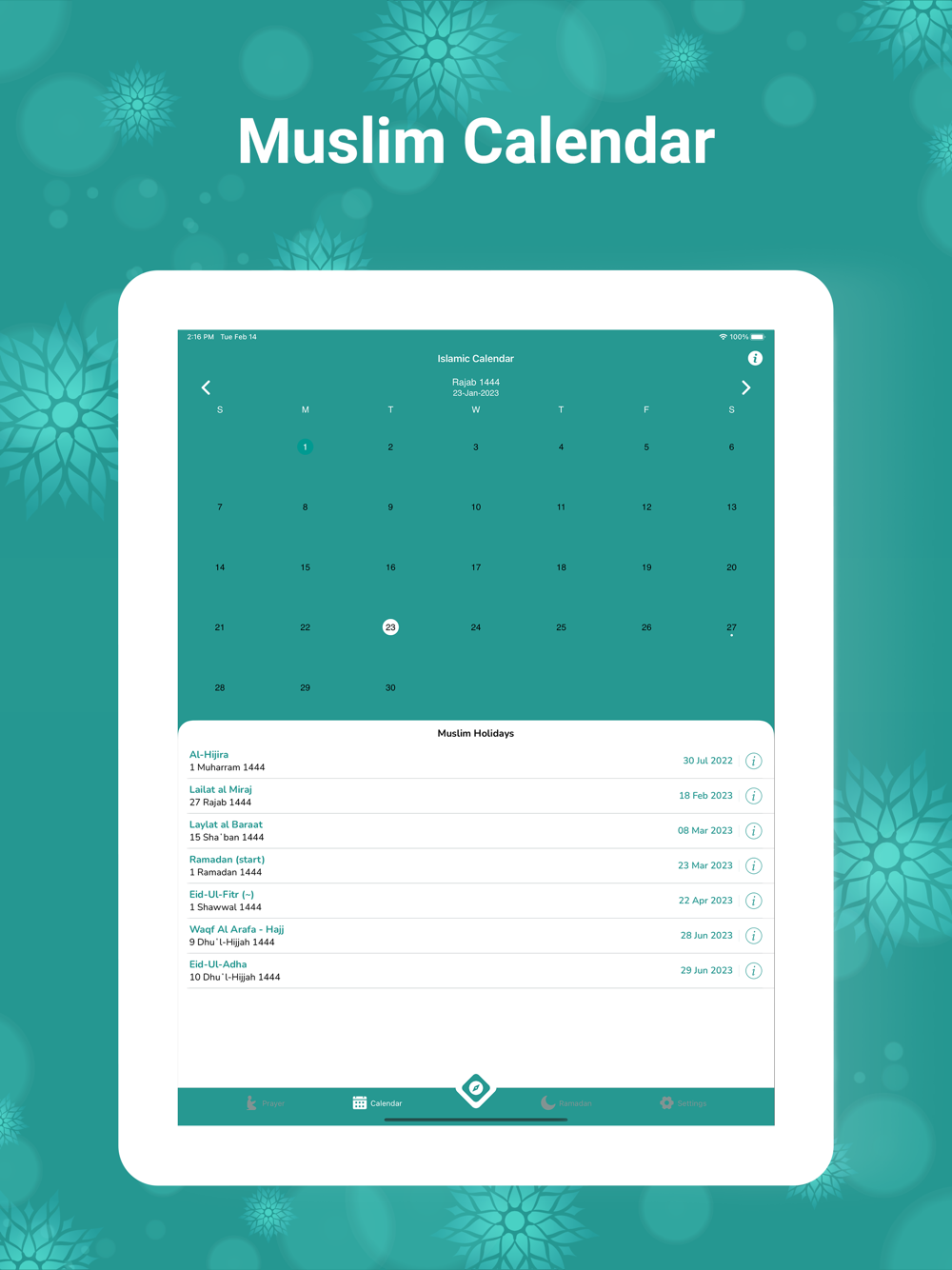 - Islamic Calendar also provides the Muslim holidays coming for the calendar year.