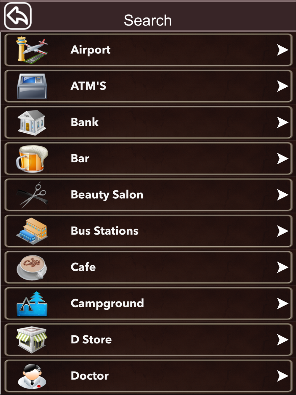 √ Find list of available nearest Campgrounds, Parks, Restaurants, Bars, Hospitals, Drug Stores, Banks, ATM's, Shopping malls, Pizza huts, Gas Stations and Railway stations etc..