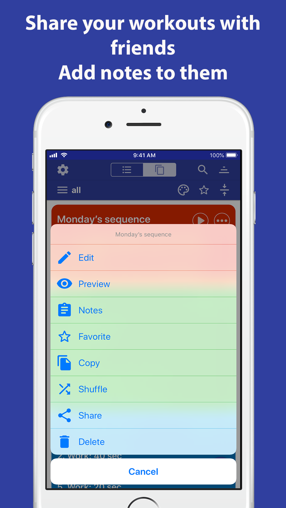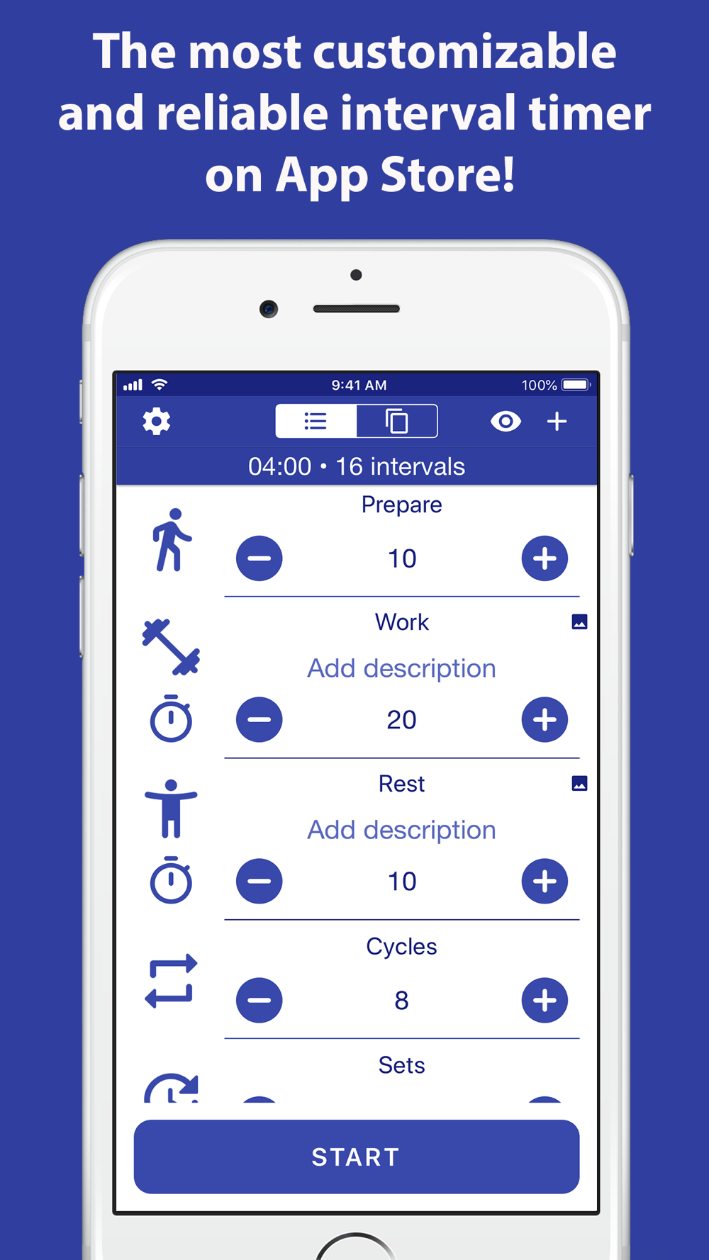 • Intervals can be configured individually. With this interval training timer you can create any interval workout with any sequence of intervals.+