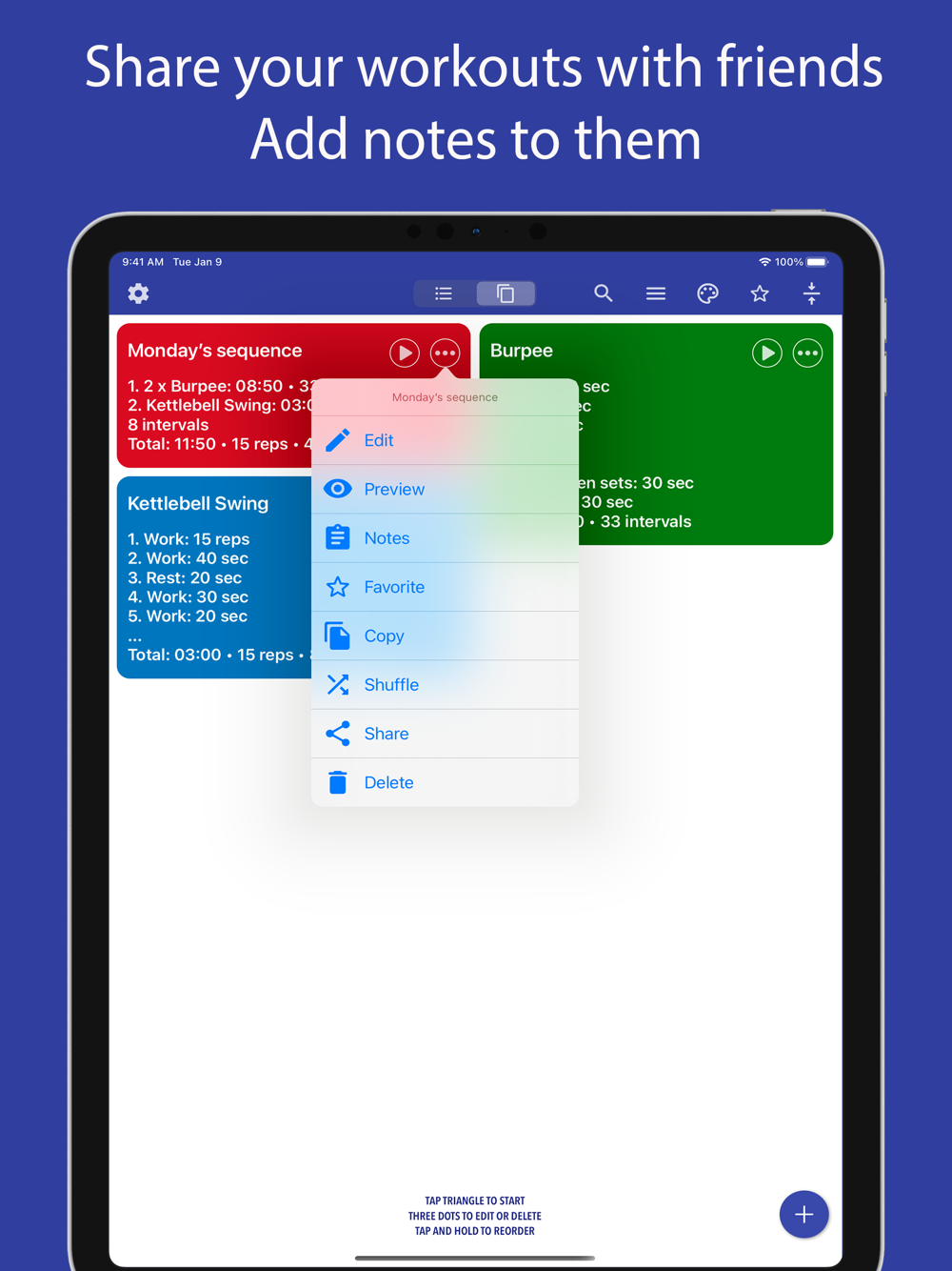 • Ability to set up prepare, work, rest, rest between sets, cool down time, number of cycles and sets.