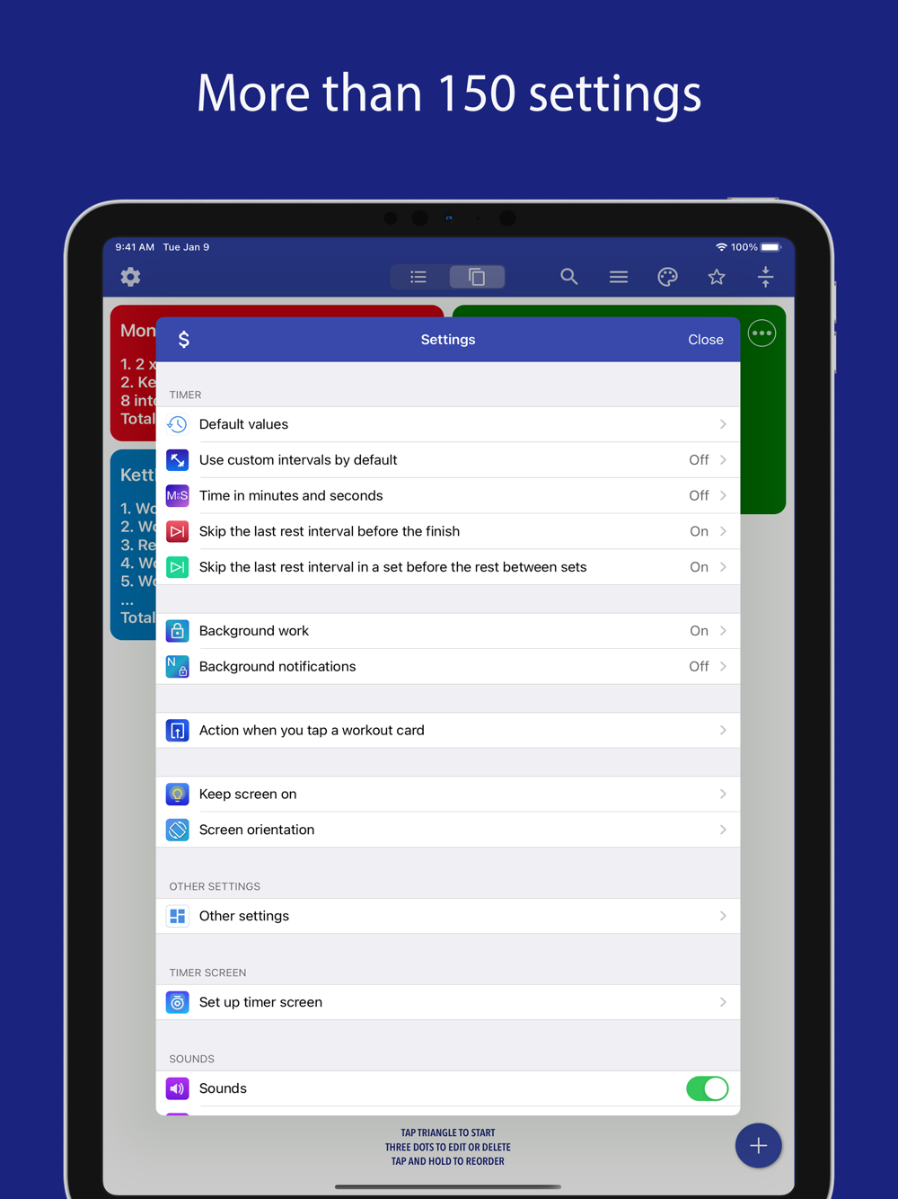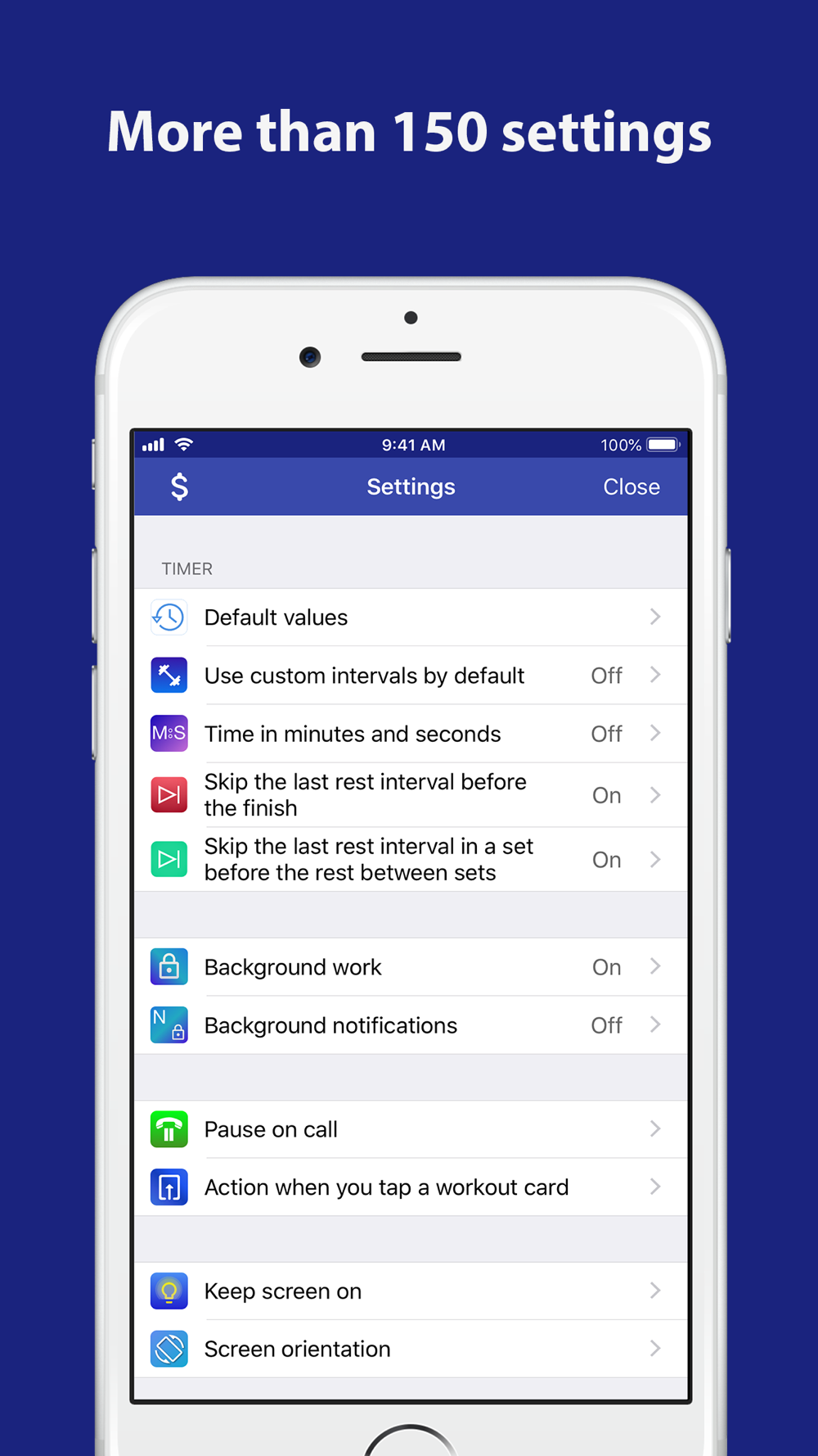 • Very intuitive interface. After installing this timer you need to press one button to start a tabata workout with classic settings.