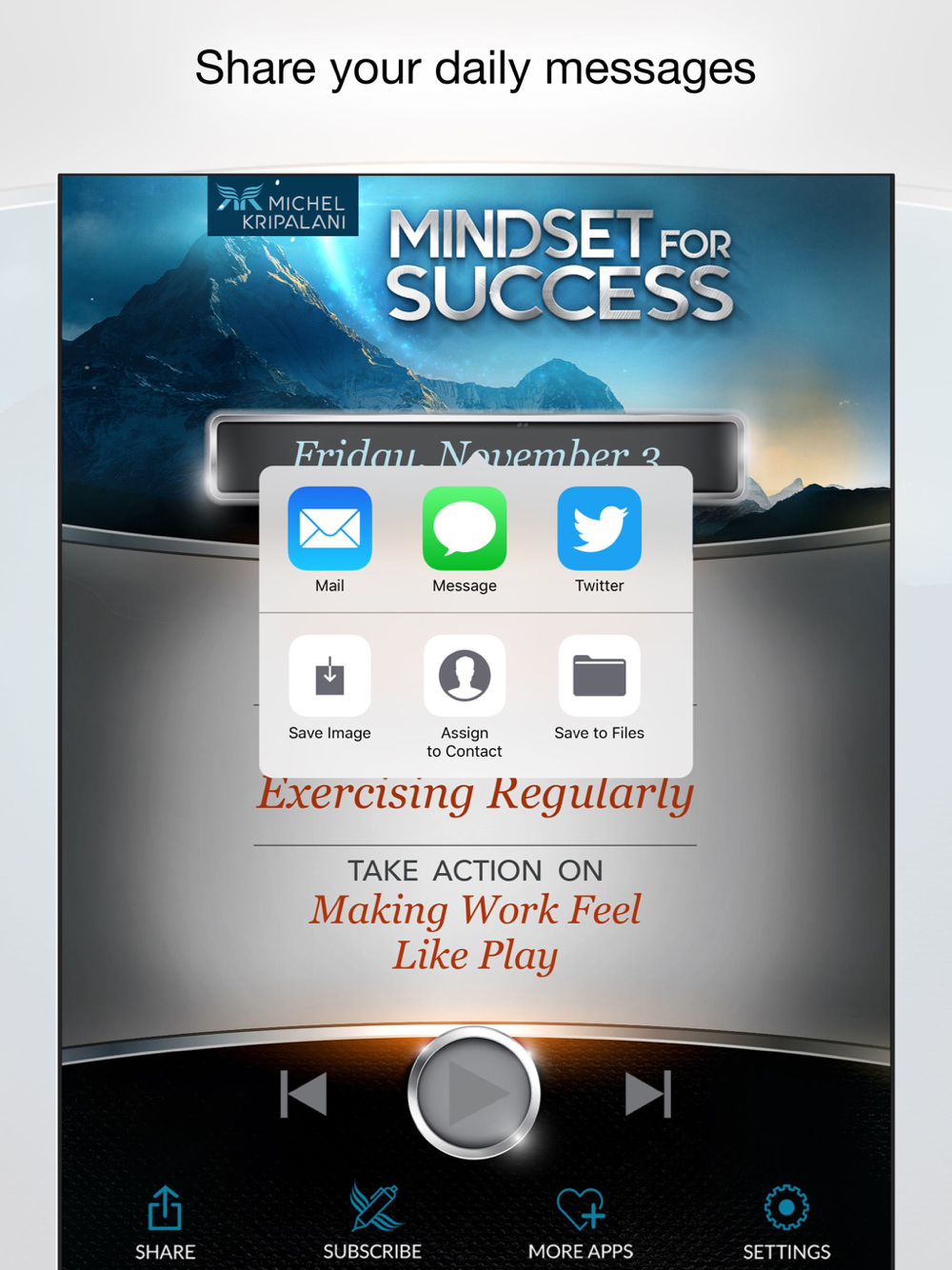 Each day, listen as Michel delivers three personalized messages, just for you, along with recommended actions to help you move toward even greater success.