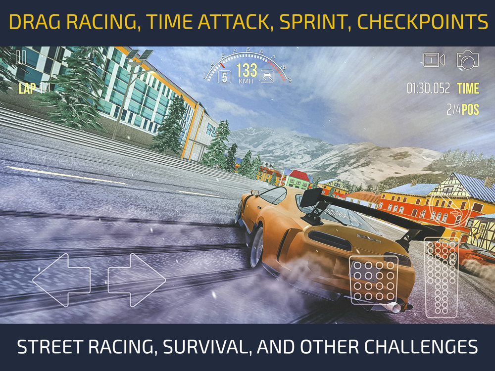 - Drag racing, time attack, sprint, checkpoints, survival and other challenges