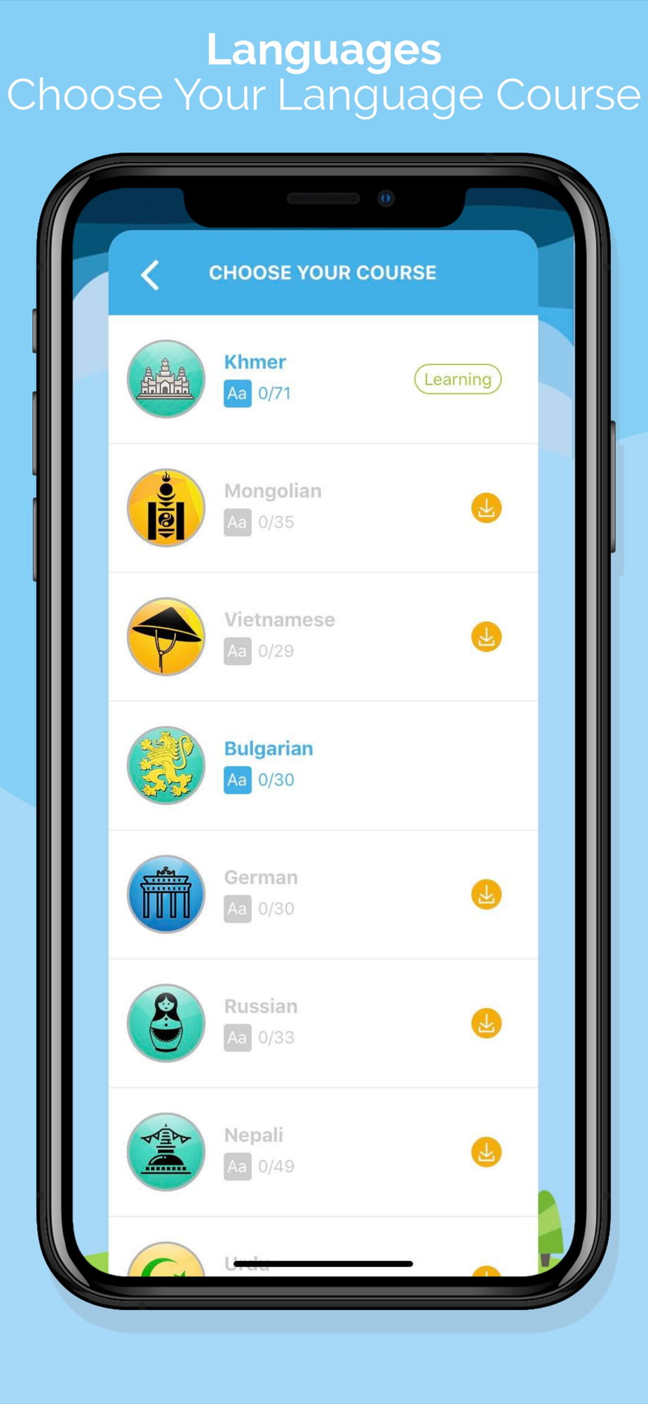 • Many other language alphabet courses: Thai Alphabet, Korean Alphabet, Vietnamese Alphabet, Lao Alphabet, Burmese Alphabet, Hindi Alphabet, Arabic Alphabet, Urdu Alphabet, German Alphabet, Hebrew Alphabet, Russian Alphabet, Georgian Alphabet, Bengali Alphabet, Bulgarian Alphabet, Khmer (Cambodian) Alphabet...