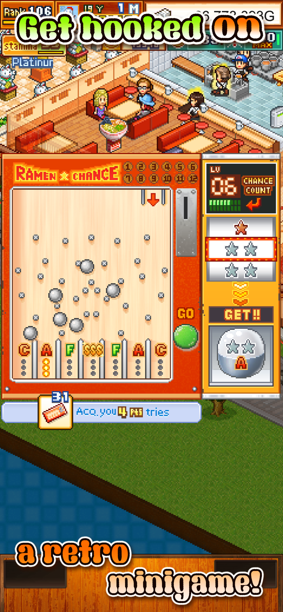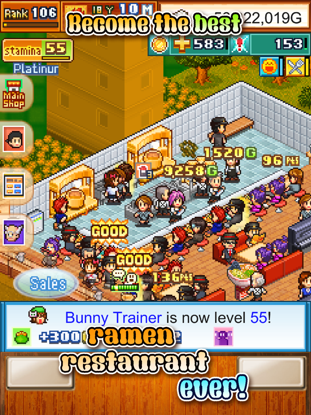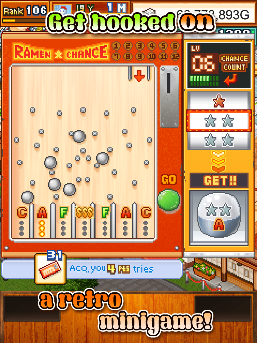 Face off rivals at ramen arena contests and make your Ramen Hall prosper. Become THE Ramen Sensei!