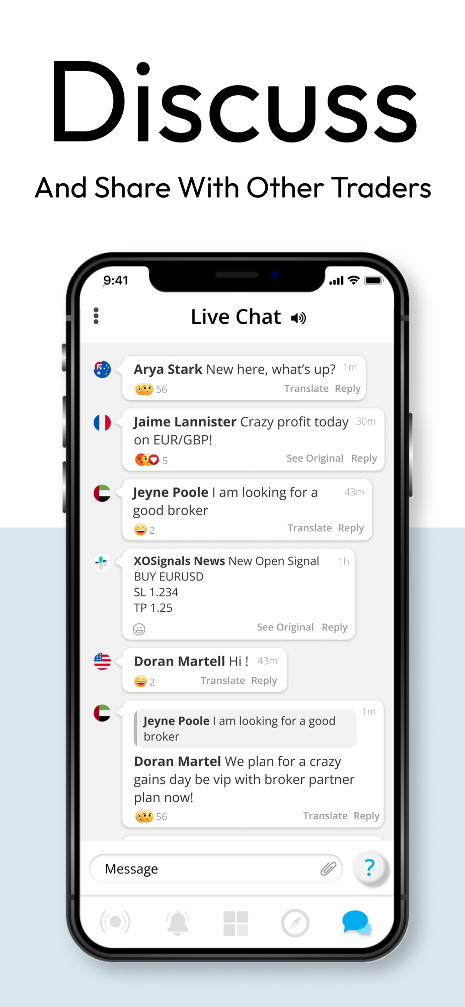 Follow the sentiment, the Daily Forex Trends and the advices of Forex traders in real-time and get Instant Forex Signals Alerts.