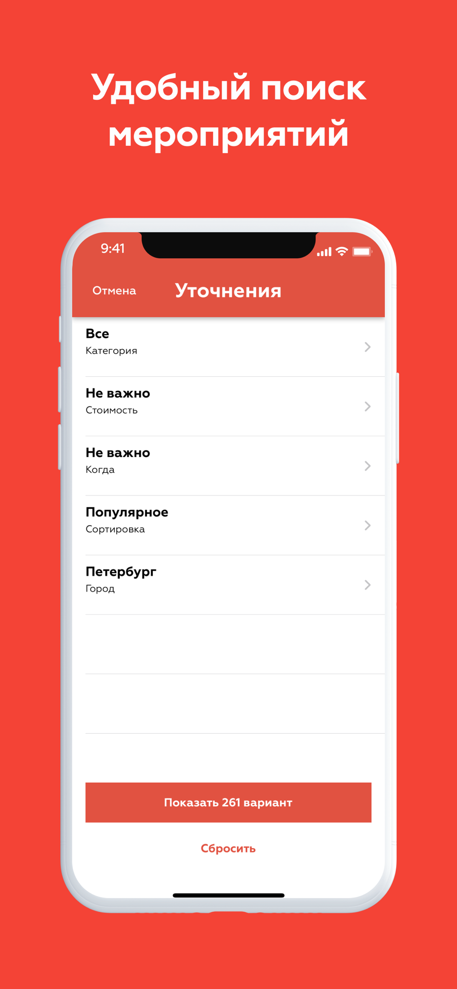 - Смотрите подборки и афишу событий в городе с фильтрами по категориям, дате и цене.