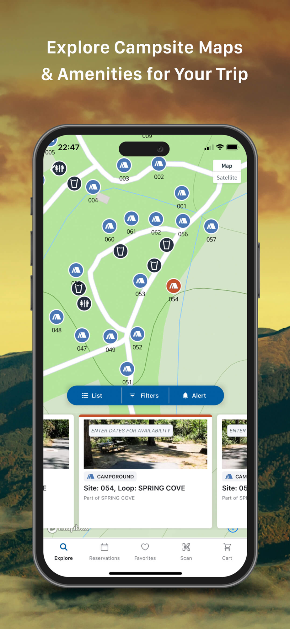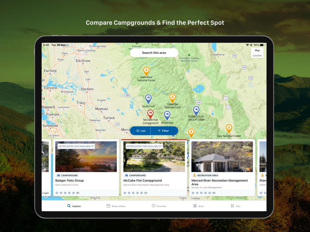 The Recreation.gov app helps you find and book campsites and experiences, review location details for your trip, and quickly access information on existing reservations from almost anywhere.