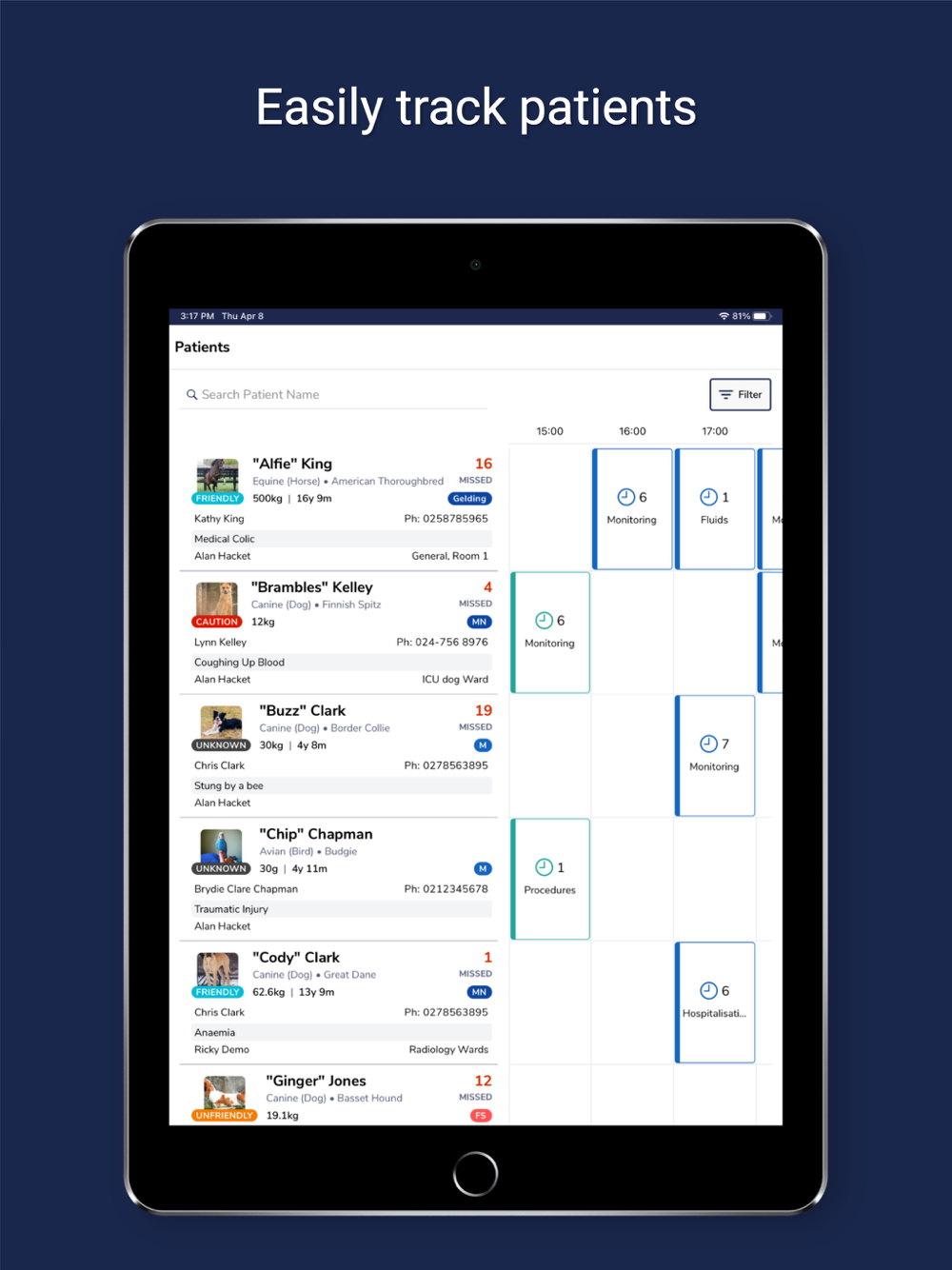Vet Radar focuses on being flexible, but intuitive. It ensures data relatability and ease of use. Our app product places importance on timeliness and accuracy by being fully mobile, so your records can be documented cage-side! It enhances workflow, allowing efficiency in all areas of work, plus it looks great!