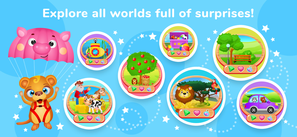 Water, space or the forest, where did they hide? Can you find them under a stone, behind a tree or in a chest? Or maybe you will look for them somewhere in the galaxy far far away? Thanks to this game you will learn observation and patience. You have to find five meerkats in each round.