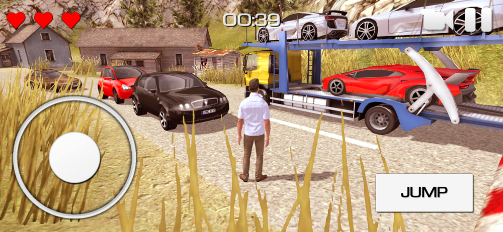 You are a truck driver named John. In this realistic truck car transport simulator game, you can walk freely over the open world, enter in your truck and transport and deliver sports cars to a destination as fast as you can. While you drive a truck you need to avoid traffic and drive carefully because you can crash or damage cargo on these dangerous mountains, hills and death roads. Park your truck at the destination, exit out of it and run to your house. Earn money and buy a license for new cars and cargo and then you will earn even more money by delivering cars. You can also unlock and drive a super sports car, deliver it by driving it to a destination and make stunts with it. Will you be the best truck driver?