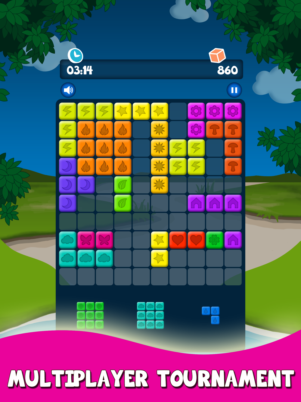 Drag and drop blocks. Fill rows and columns. Earn more points than your opponents. Clear multiple rows and columns in back to back turns to score streak bonus and combos.