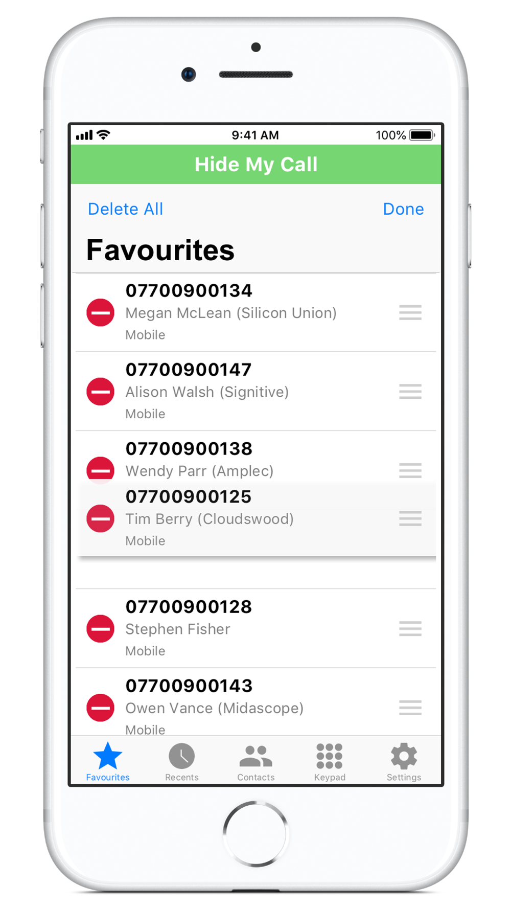 - Set whether the App launches to display your Favourites, Recents, Contacts or Keypad.