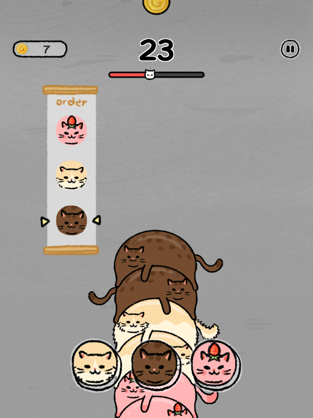 Show your momentary concentration to stack cats up to the space.