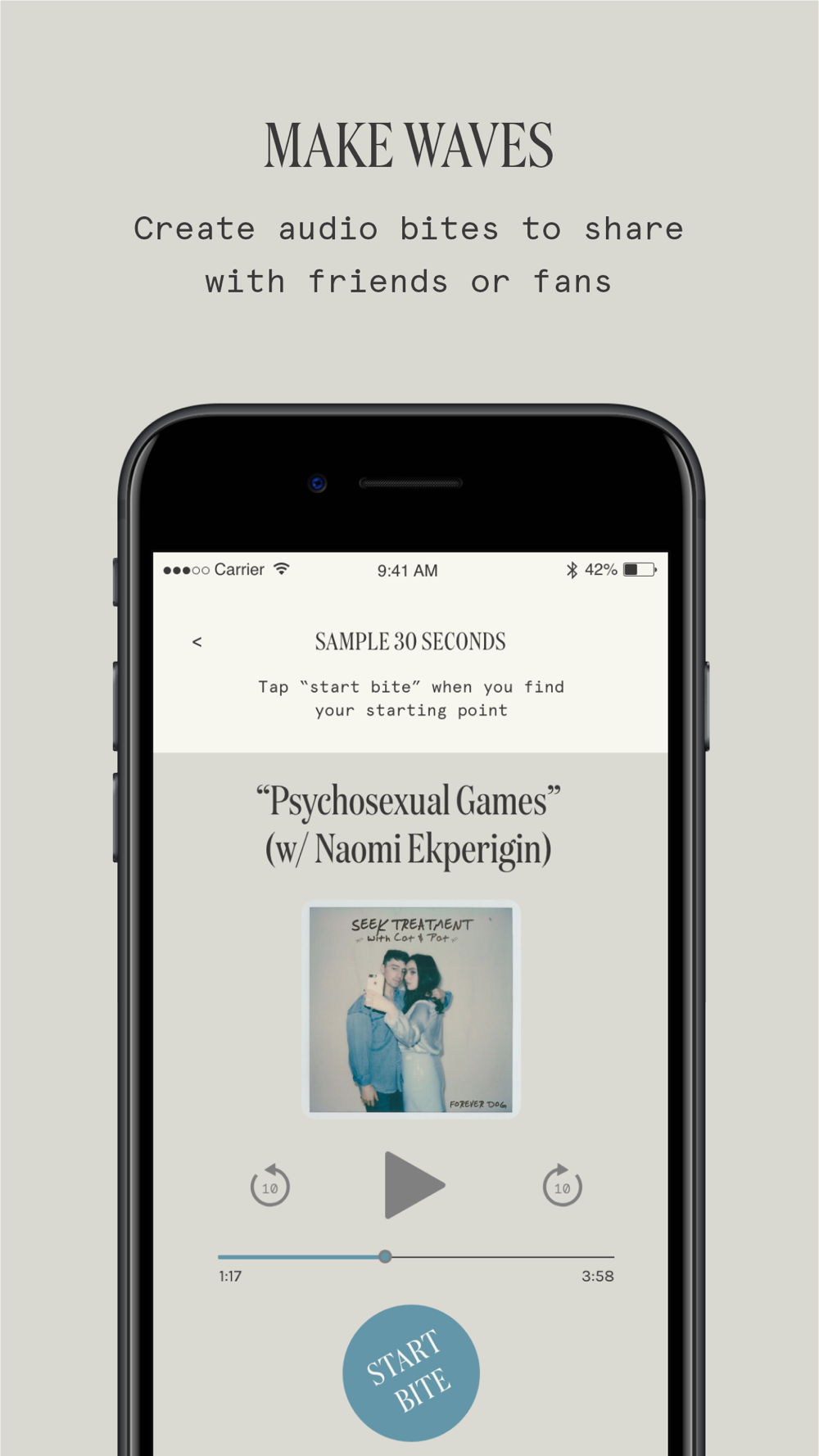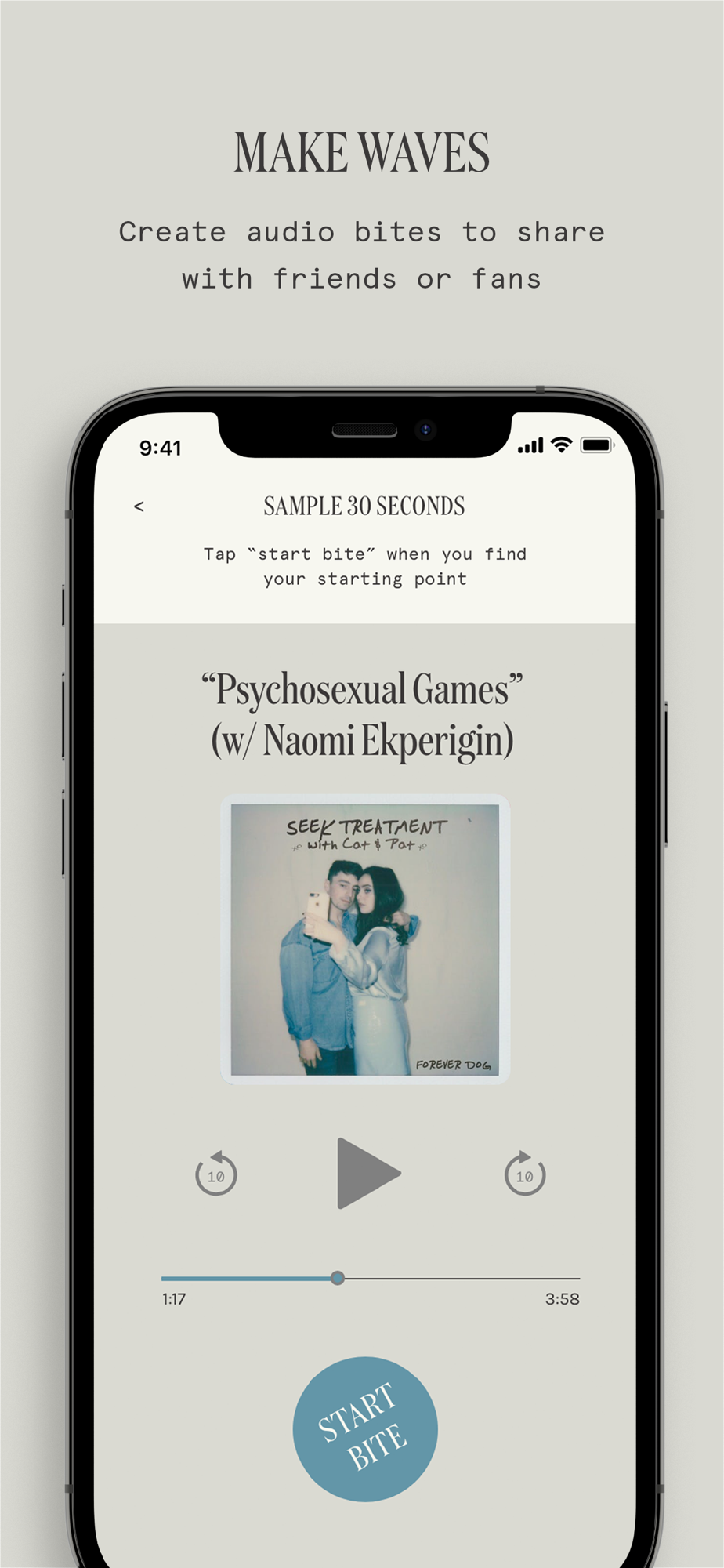 • Upload, clip, and customize audio bites to share with with your friends, followers, or fans