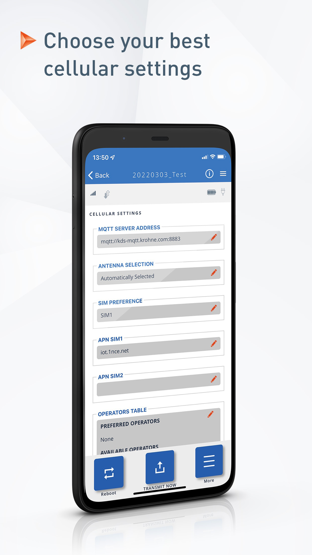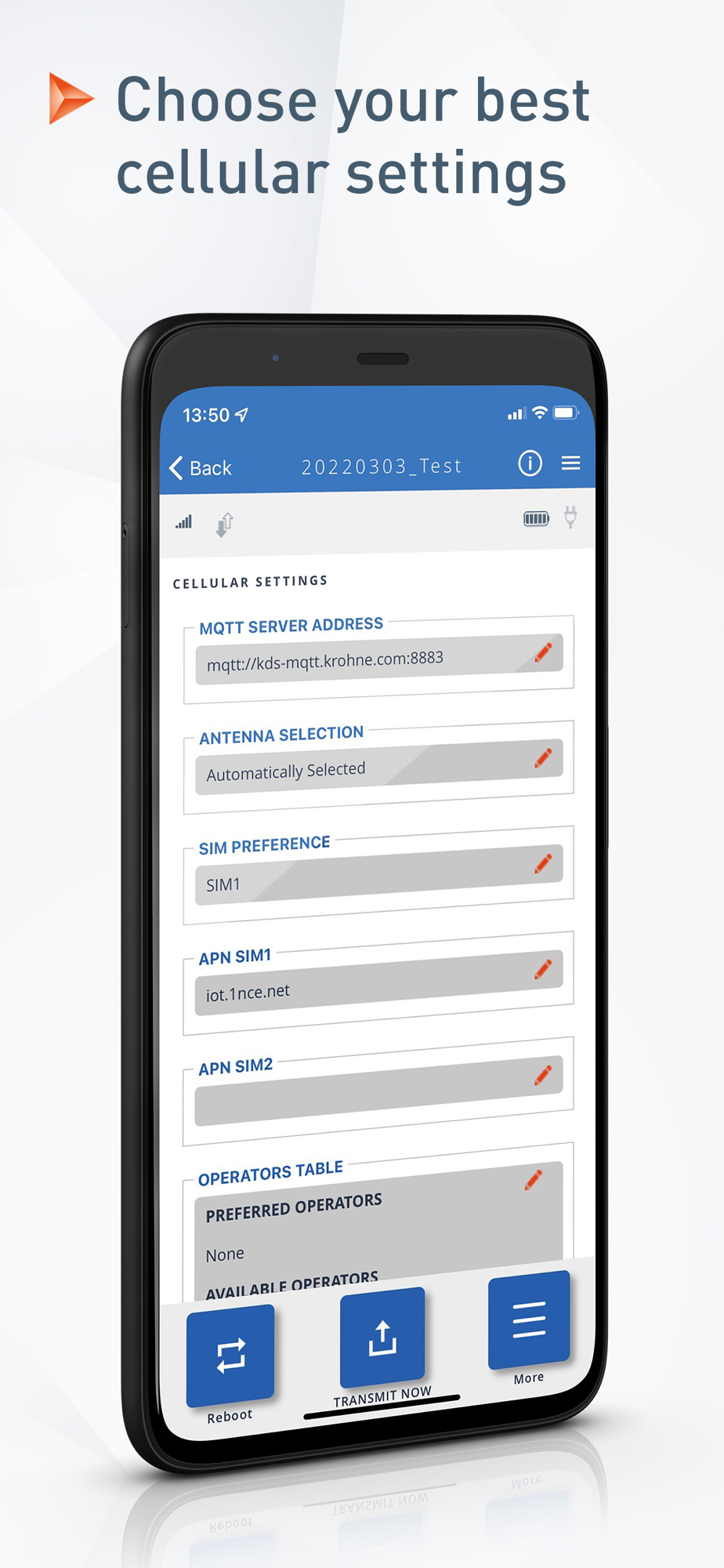 The OPTIBRIDGE 3880 Setup app enables wireless access to the edge gateway OPTIBRIDGE 3880 device. This gives you as a user an overview of the current device status such as transmission schedule, connectivity status, battery life, live measurement values and much more. Furthermore, various settings such as installation of KROHNE sensor specific templates like KROHNE WATERFLUX 3070 Modbus & Basic IO, cellular network settings and target server settings can be made.