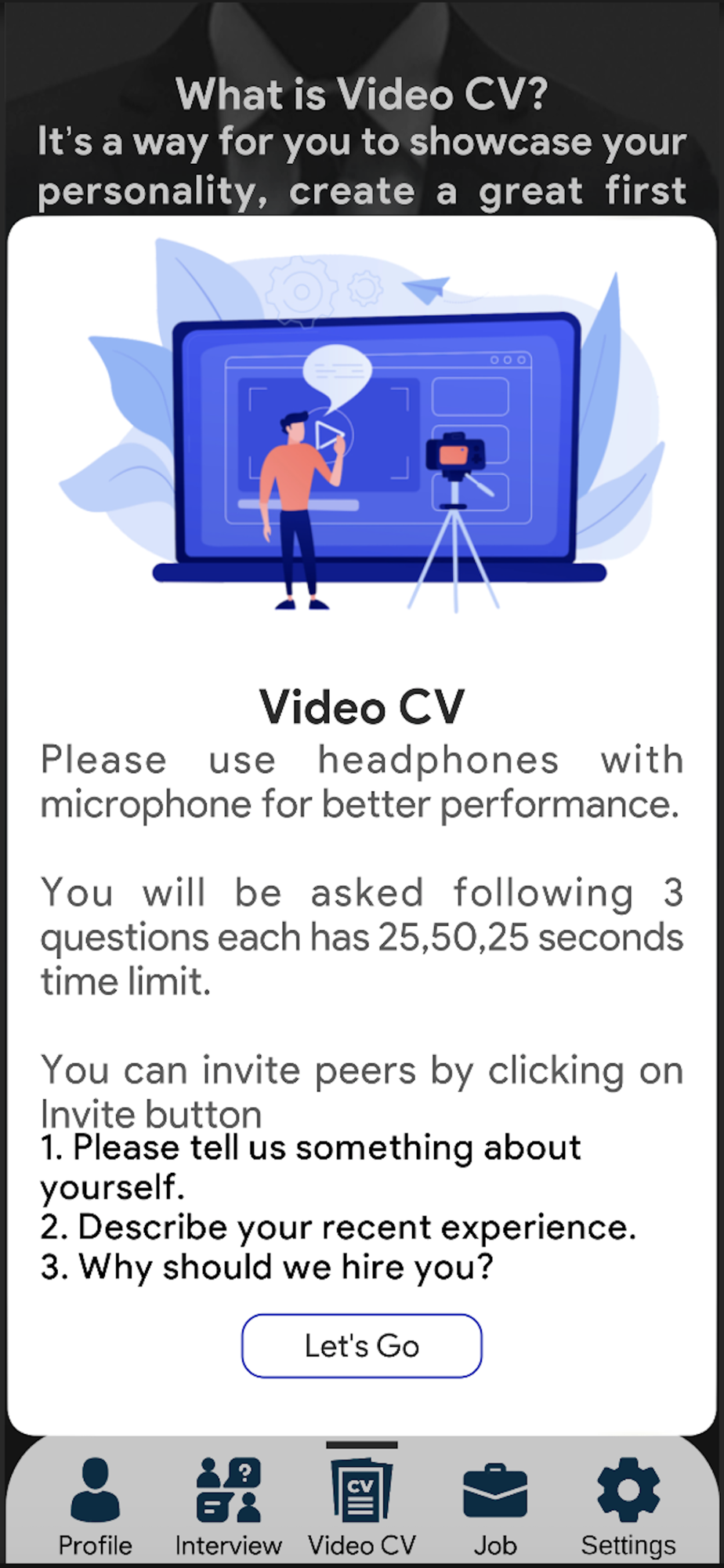We have designed an interactive interview preparation tool to help you rehearse your interview answers, where our animated characters will conduct a mock interview. Your answers will be recorded so you can playback, observe and rectify any mistakes and re-record your answers and share with employers and mentors. You cannot afford to learn from mistakes when it comes to job interview instead learn from mistakes using our tool.
