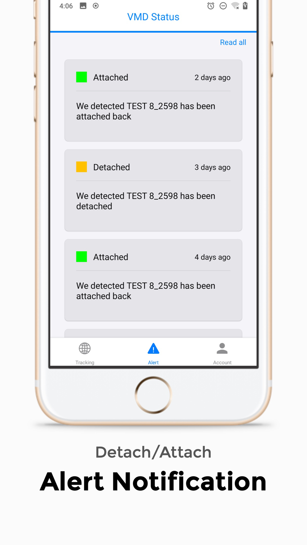 Vehicle asset tracking app with lock/unlock and push notification feature